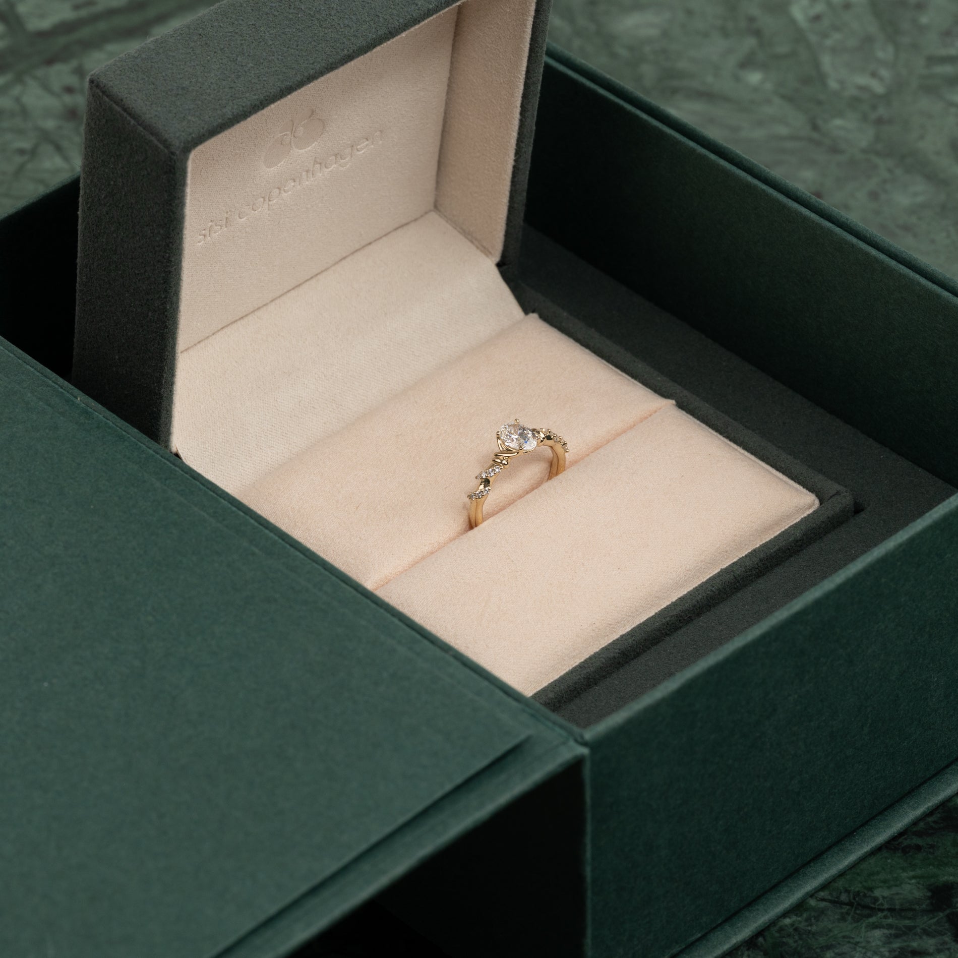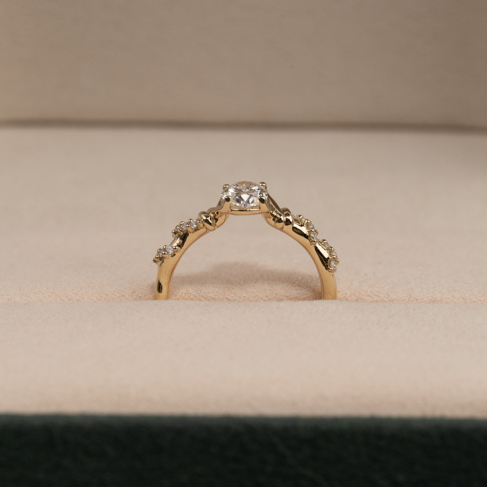Resultatet är en ring som förenar det tidlösa uttrycket från den klassiska solitärringen med en personlig twist i form av organiska detaljer.