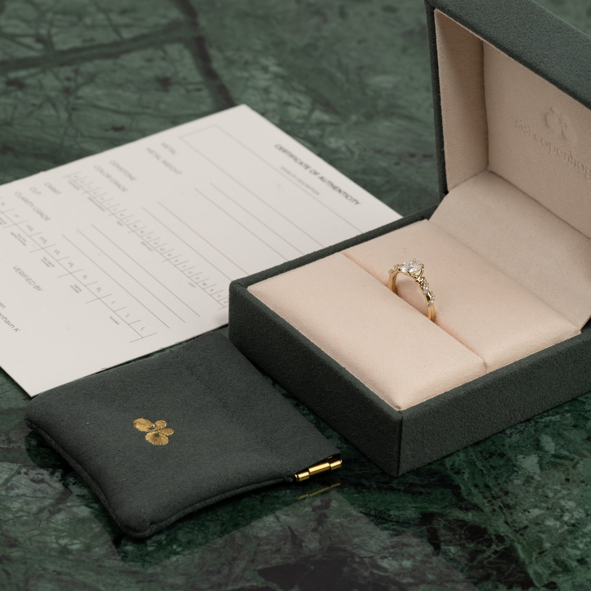 Certifikatet innehåller alla relevanta och specifika informationer om smycket, inklusive de 4 C:erna.