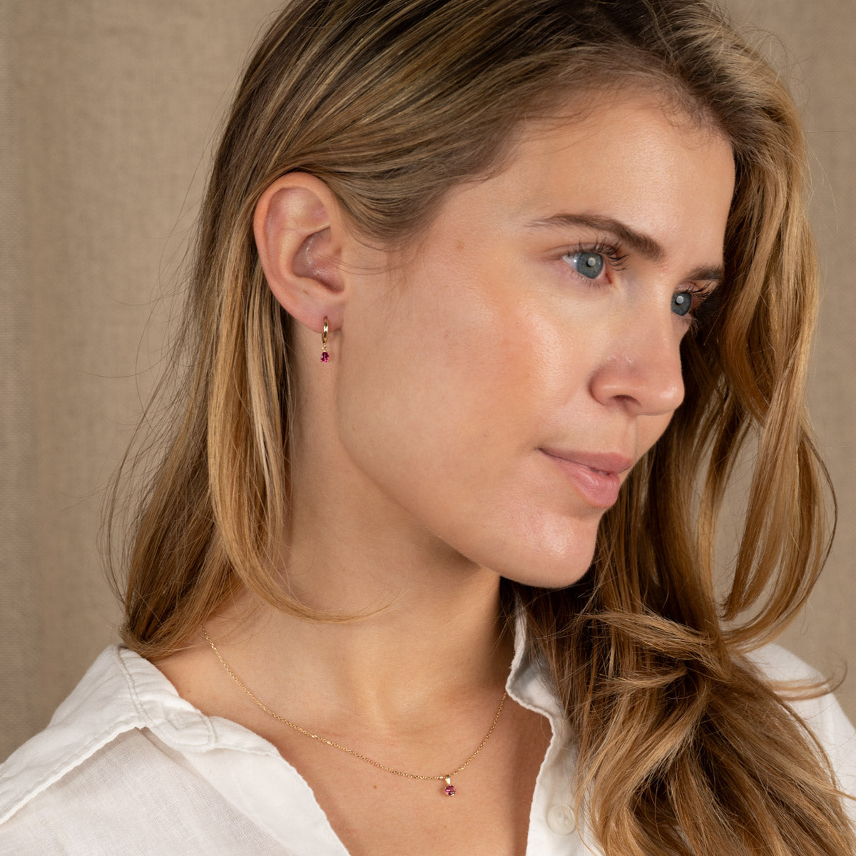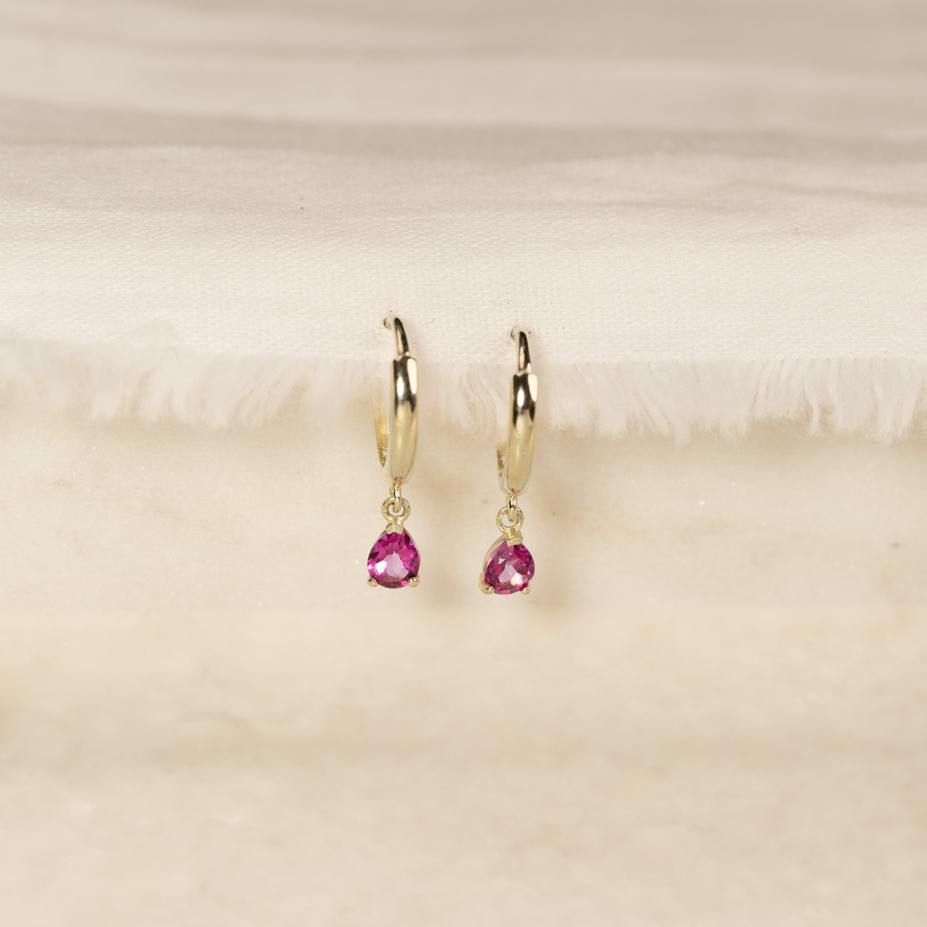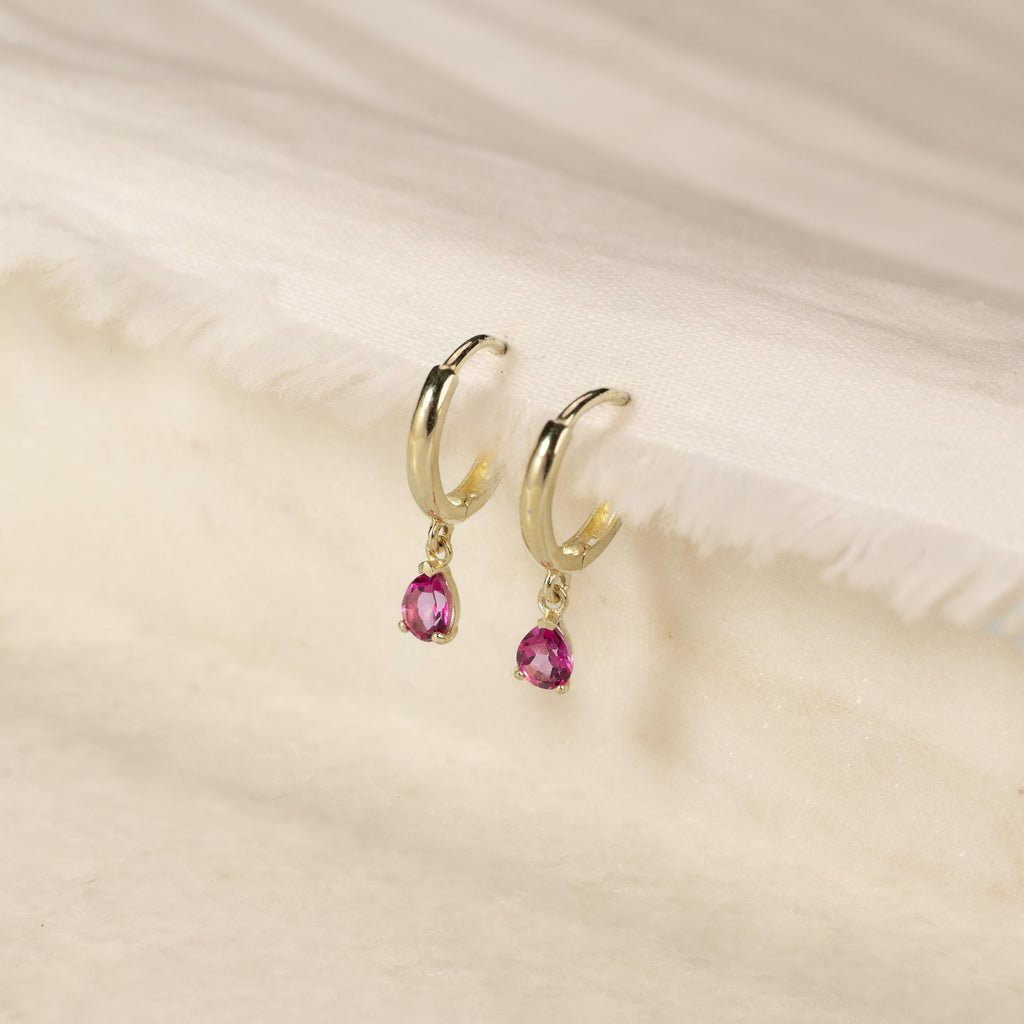 Örhängena är tillverkade i 100% återvunnet 9 karat massivt guld, med hängen besatta med en rosa topas. De fina örhängena är en tidlös klassiker som passar väl till både vardags och fest, och som kan bäras ensamma eller tillsammans med flera öronsmycken.