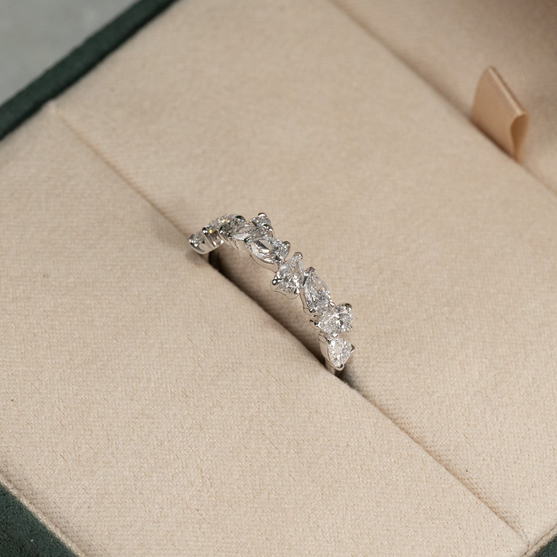 Alliansring i 14 karat vitguld med 1,2 ct. pear-cut labbodlade diamanter