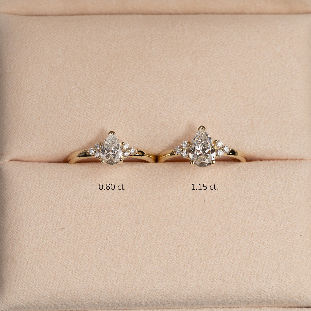Pear-cut designen tillför en romantisk och elegant känsla – perfekt för dig som letar efter en unik förlovningsring eller en elegant cocktailring.