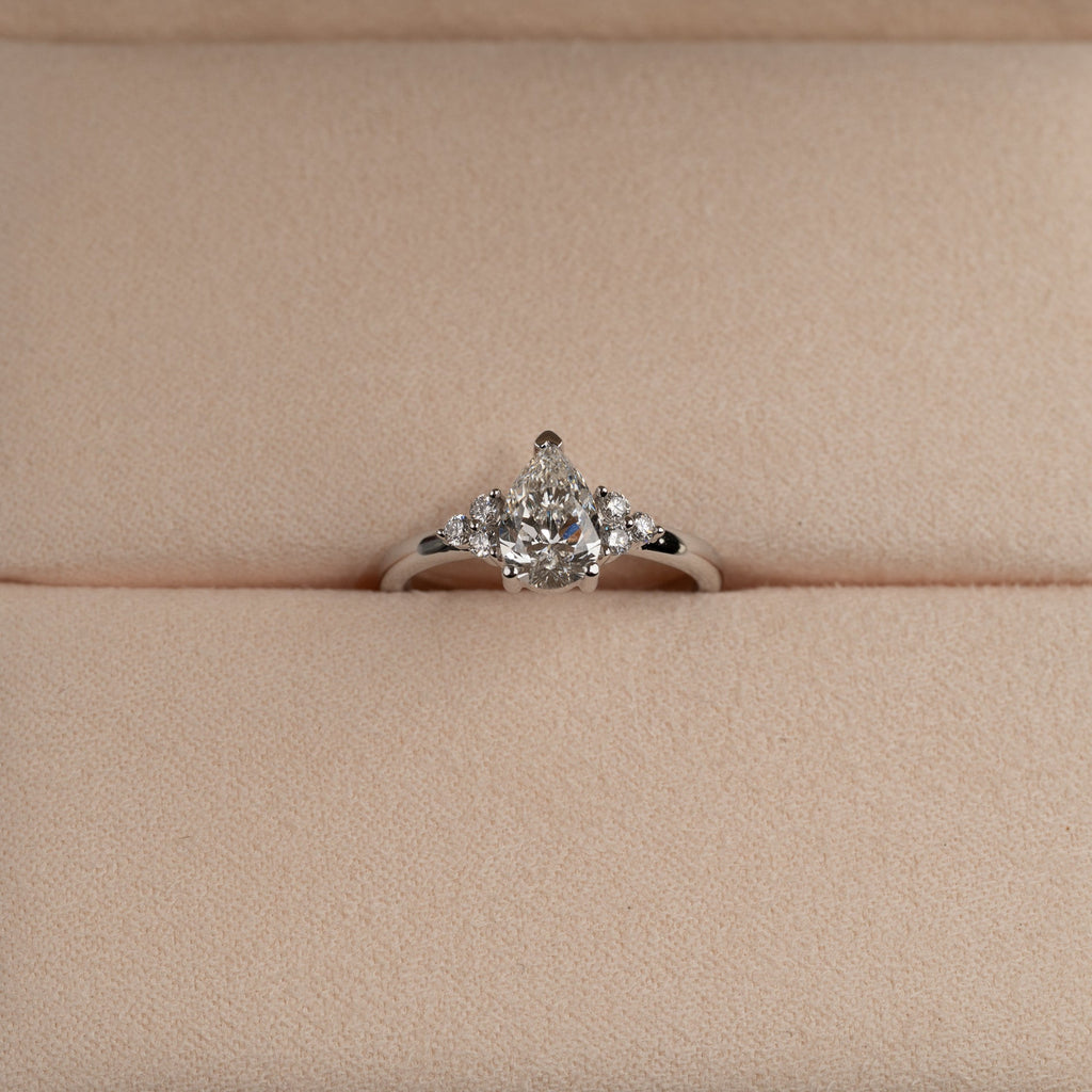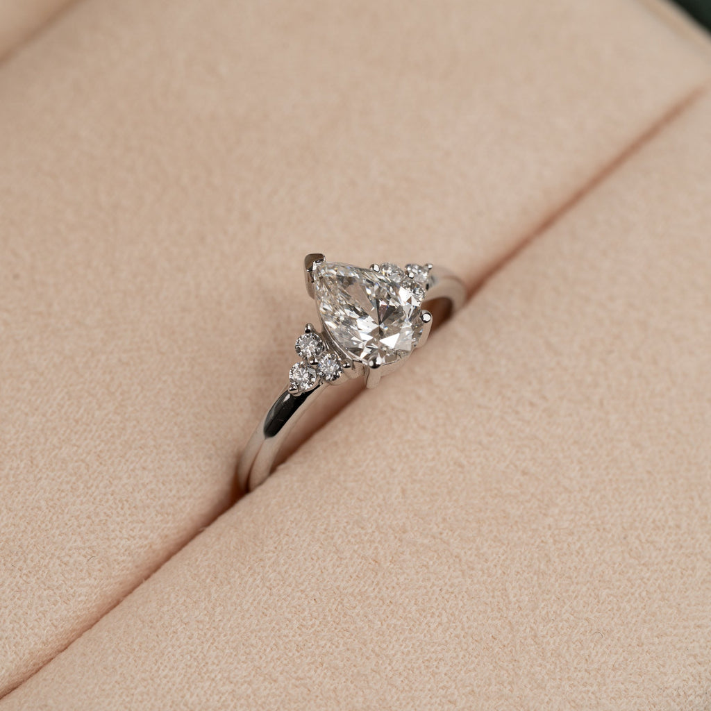 Pear-cut diamantring med en 1,0 ct. labbodlad diamant och eleganta sidostenar