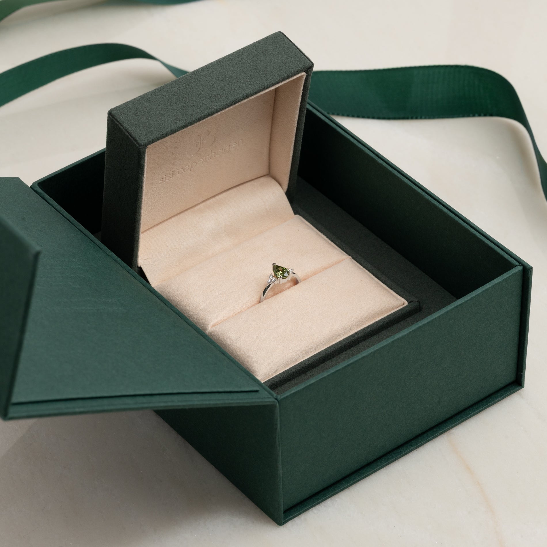 Den gröna diamanten tillför en romantisk och sagolik känsla – perfekt för dig som letar efter en unik förlovningsring eller en elegant cocktailring.