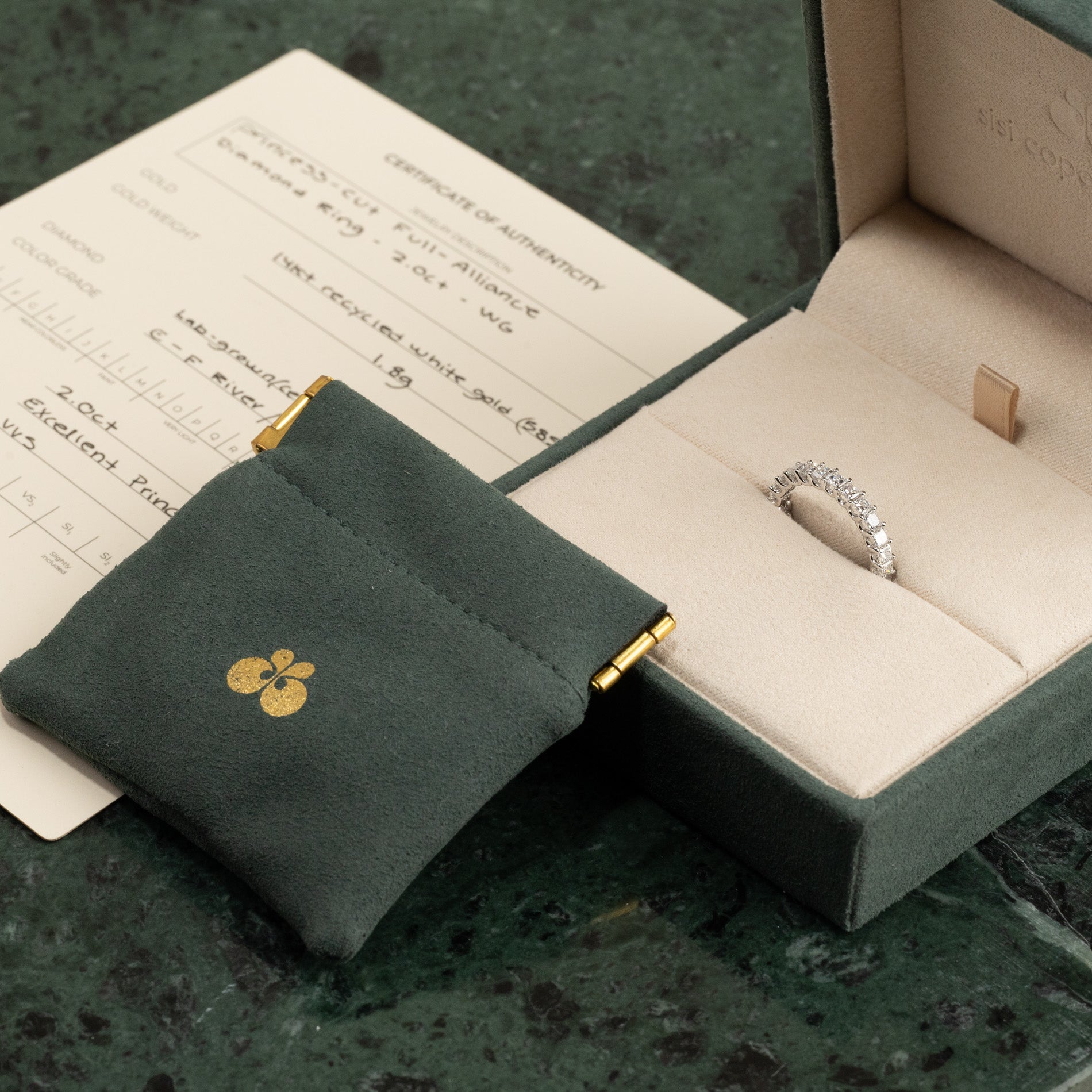 Smycket levereras i vår exklusiva Diamond Collection-box, som innehåller en smyckesask, ett certifikat och en pouch.