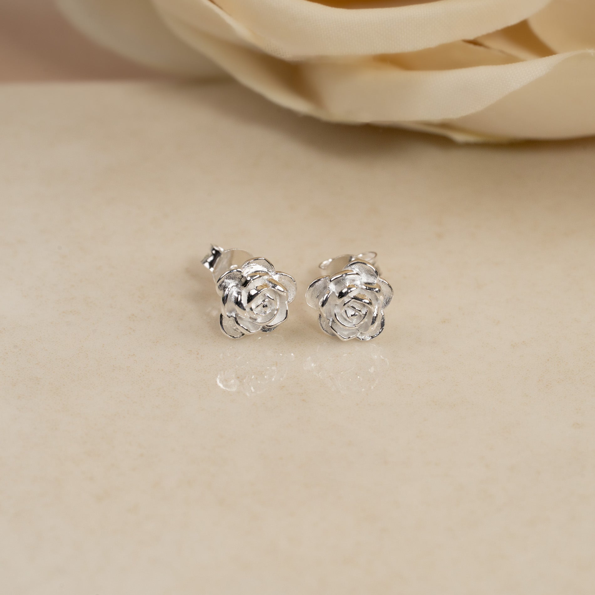 Rosformade örhängen i 925 sterlingsilver (8 mm)