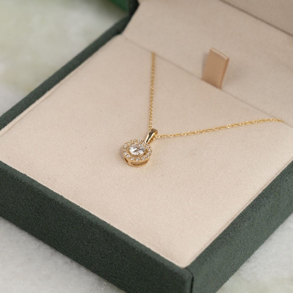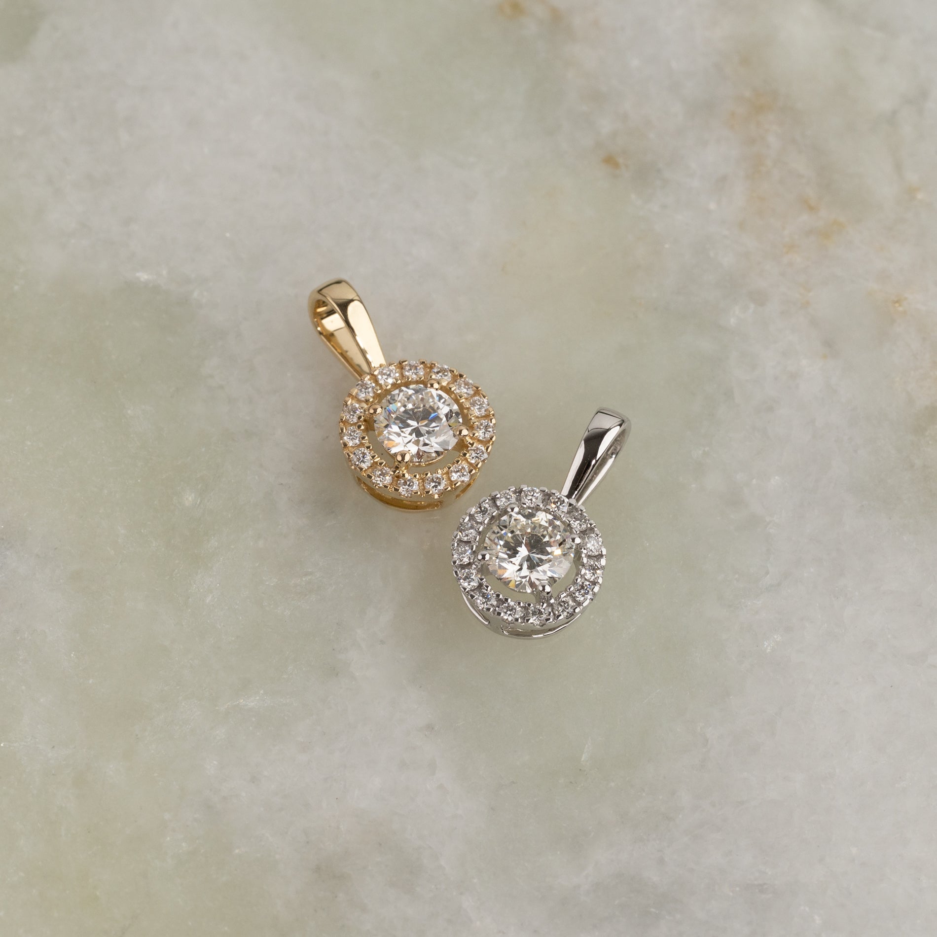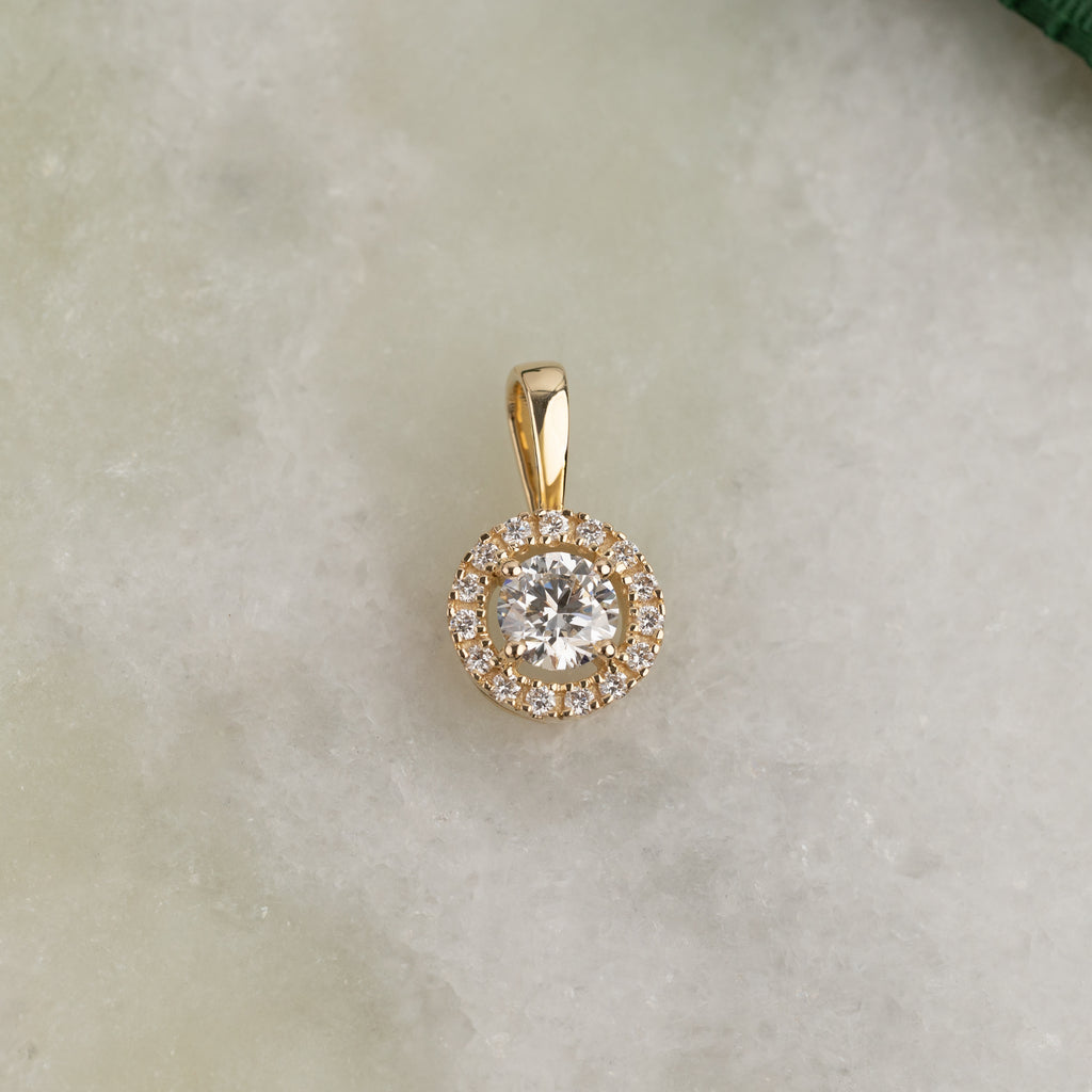 Halo-hänge i 14kt guld med labbodlade diamanter 0,6 ct