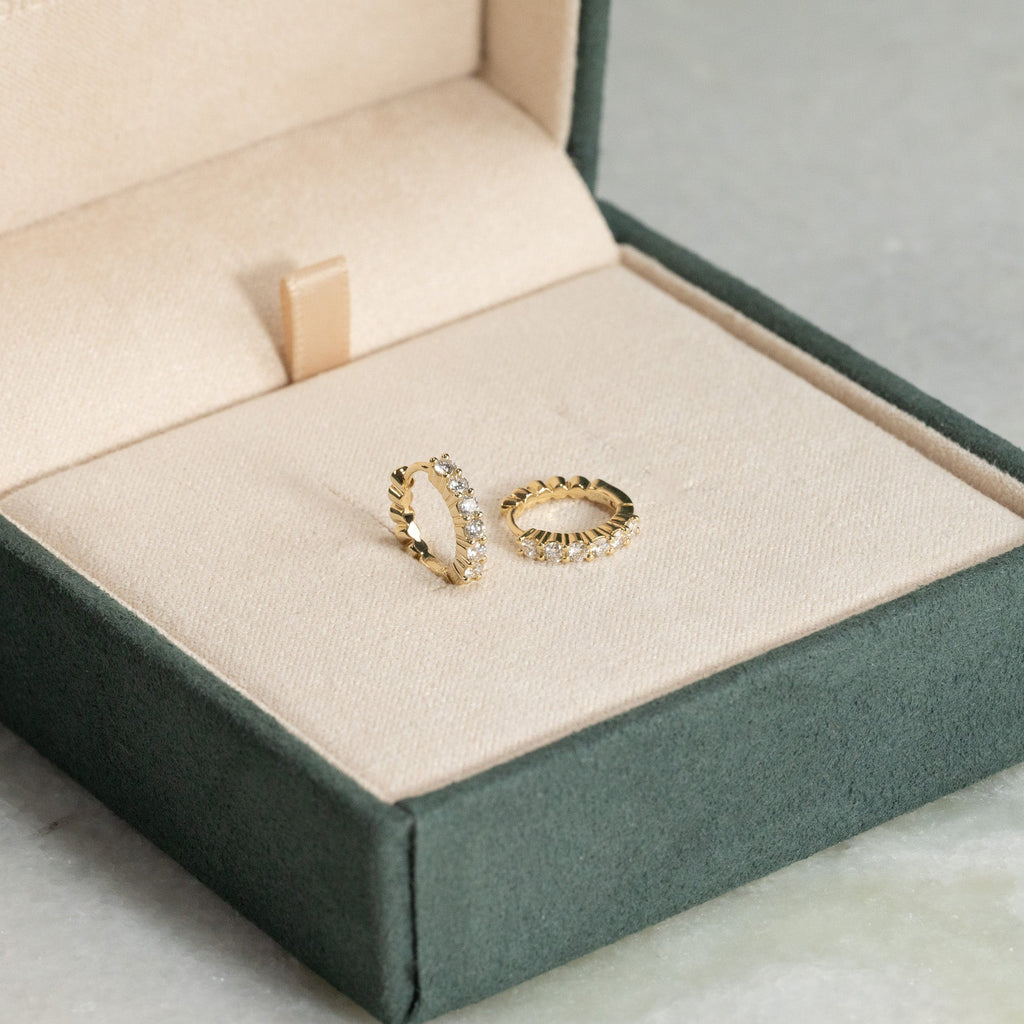 Vi använder oss av diamanter som odlas i en kontrollerad laboratoriemiljö med avancerad teknik och förnybar energi. Labbodlade diamanter har samma fysiska, kemiska och optiska egenskaper som nedbrytna diamanter, vilket innebär att de är riktiga diamanter på alla sätt.