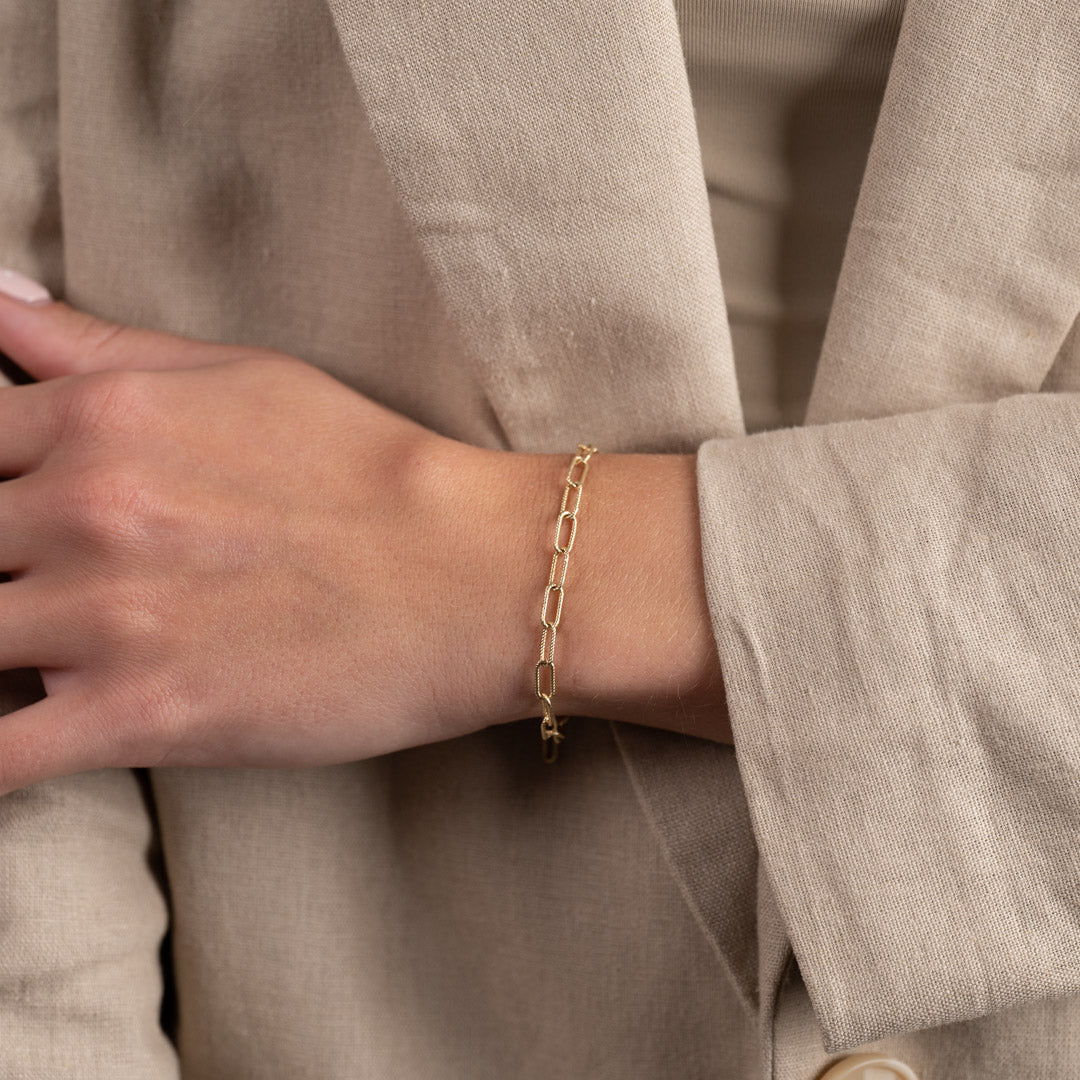 Guldarmband med räfflade kedjelänkar