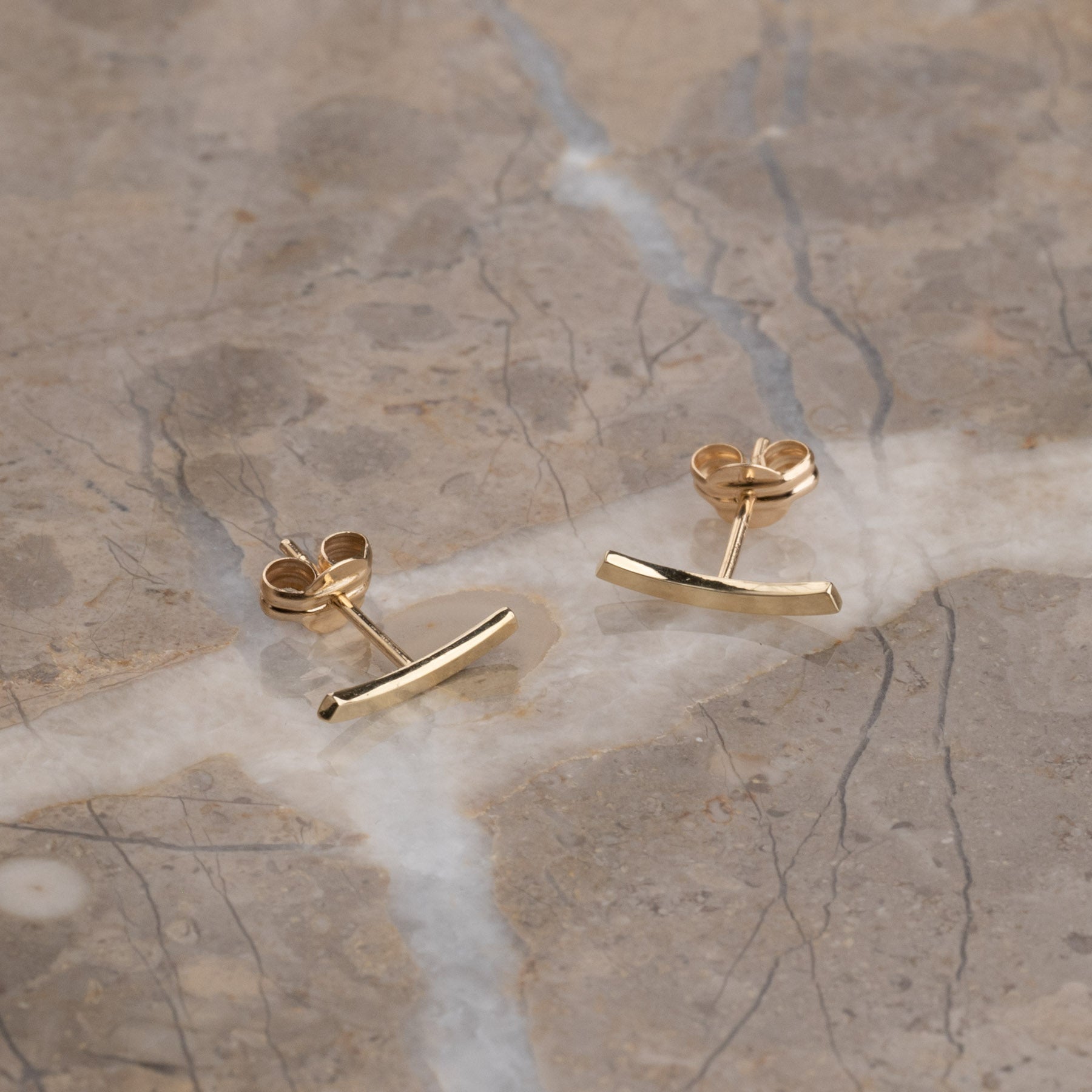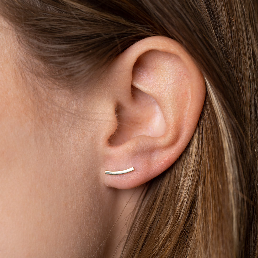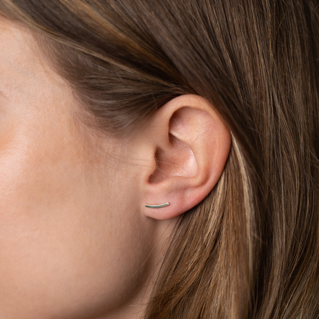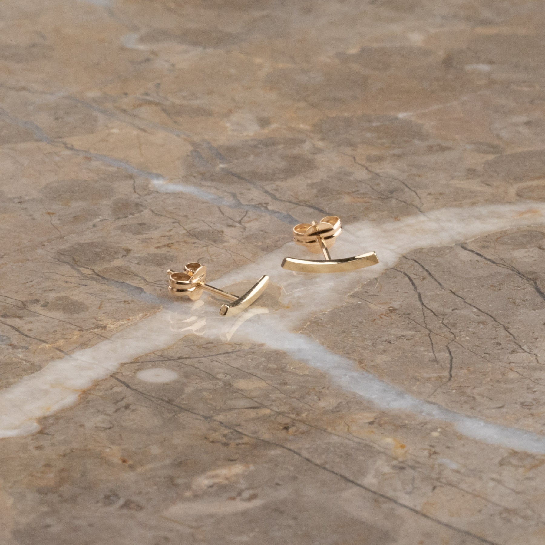 Våra Scarlett örhängen är tillverkade av 100% återvunnet massivt 9 karats guld. De är designade som en krökt linje. Den enkla designen kan utformas så att kurvan följer öronens kontur. Örhängen kan också användas om du har flera hål i öronen.