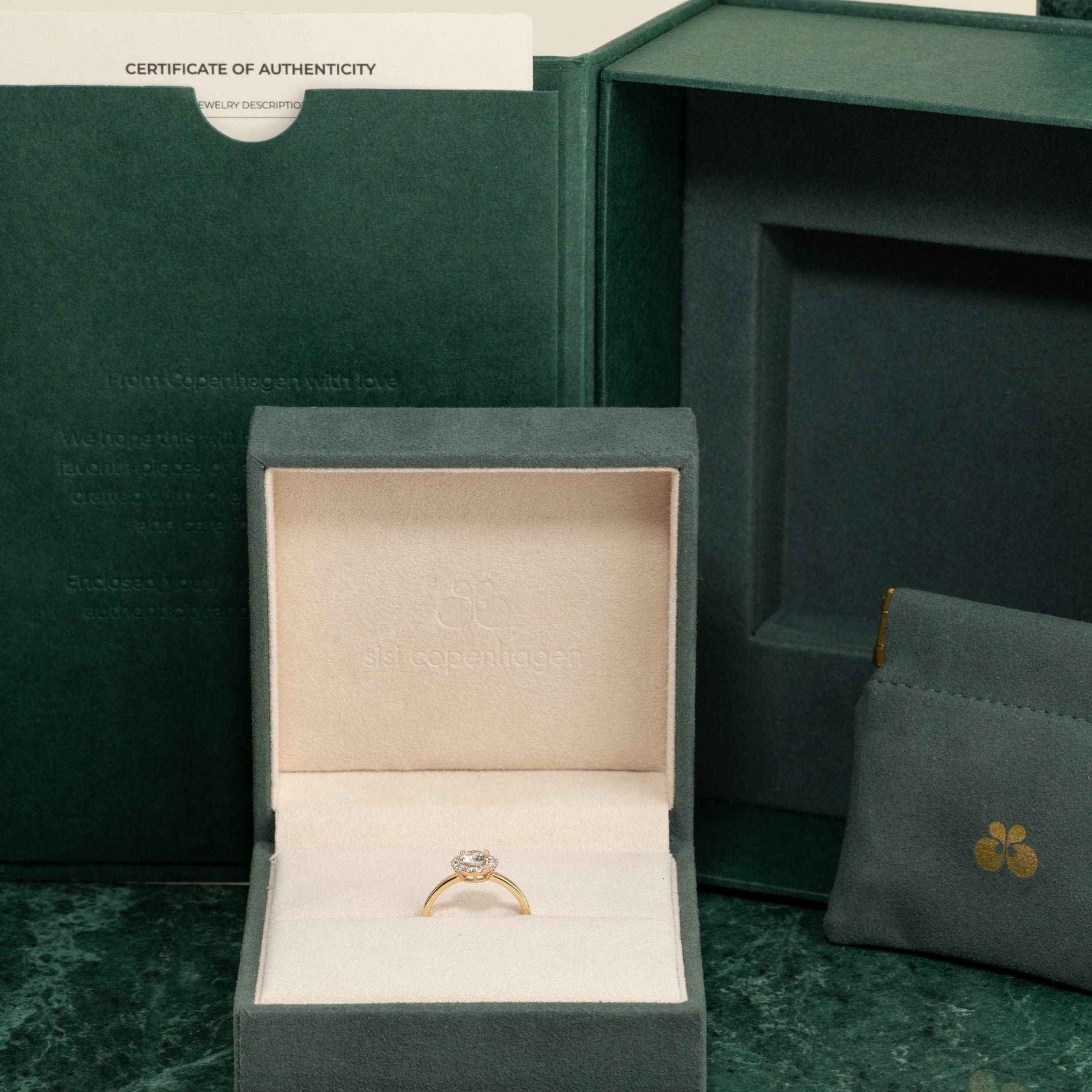 Klart att ges som gåva. I asken hittar du en smyckeskrin, en påse och ett 'certificate of authenticity'.