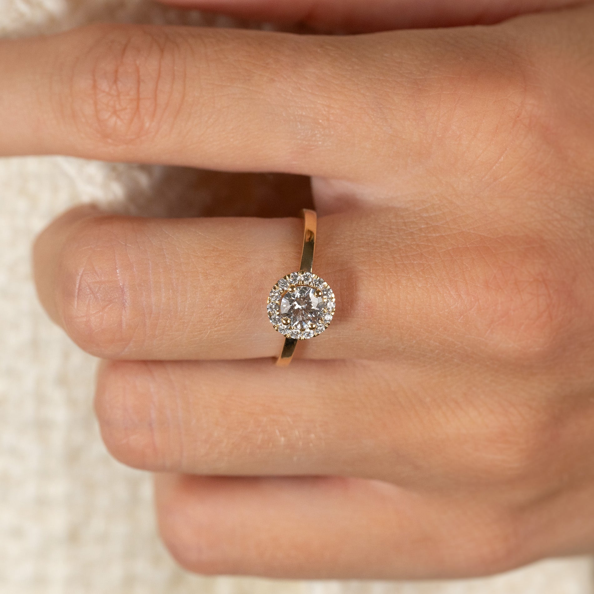 SIMPLE ROUND HALO LAB-DIAMOND RING - 0.7ct - YG