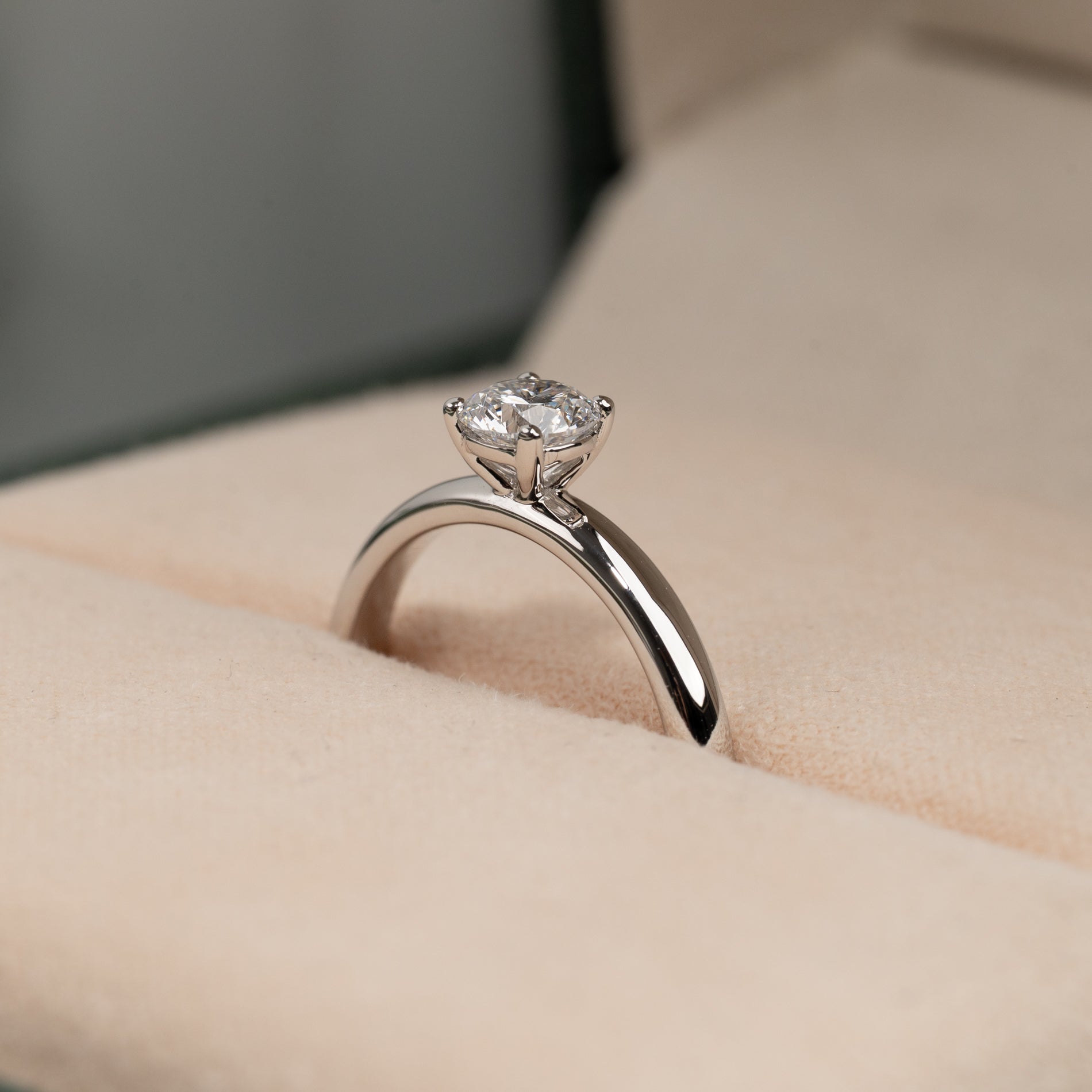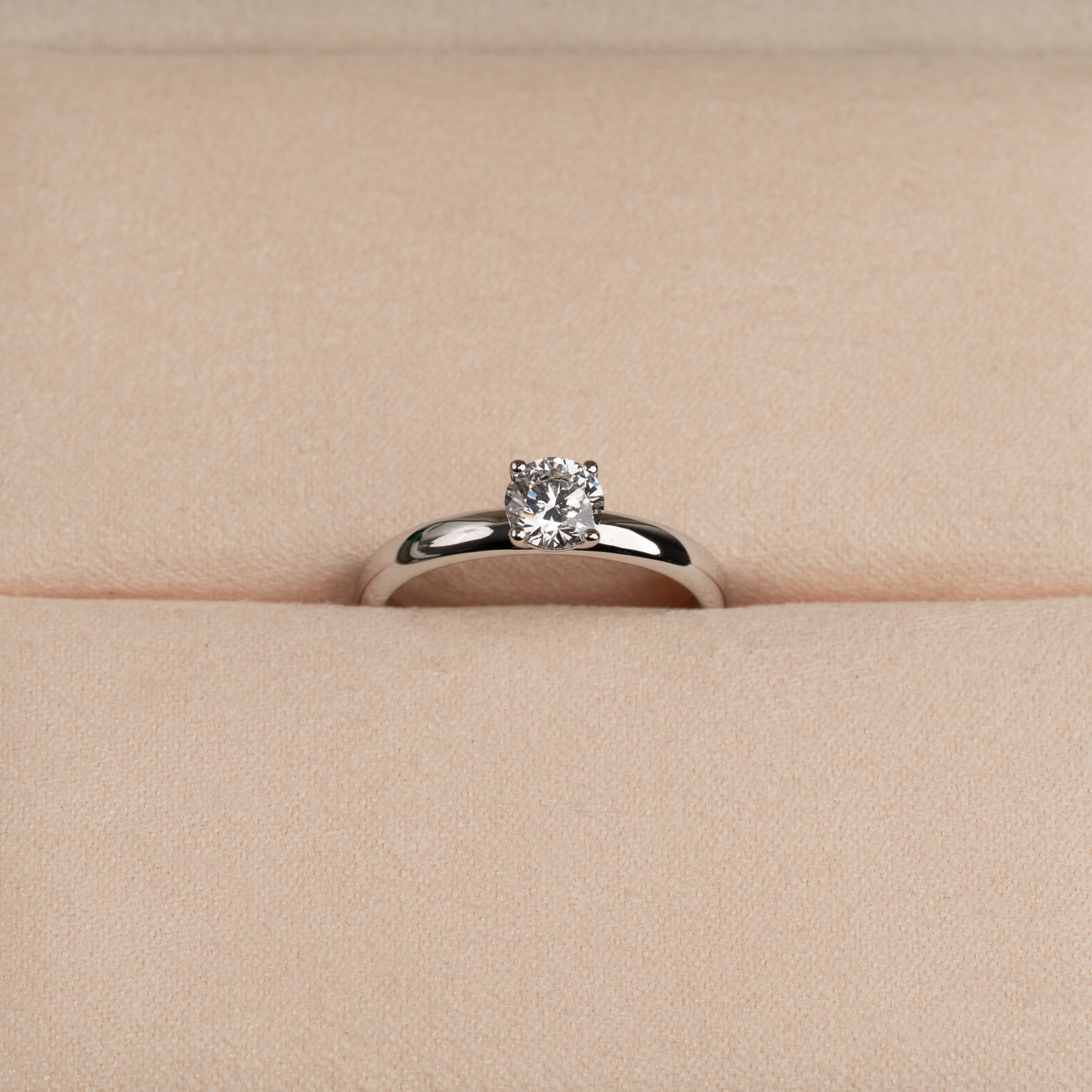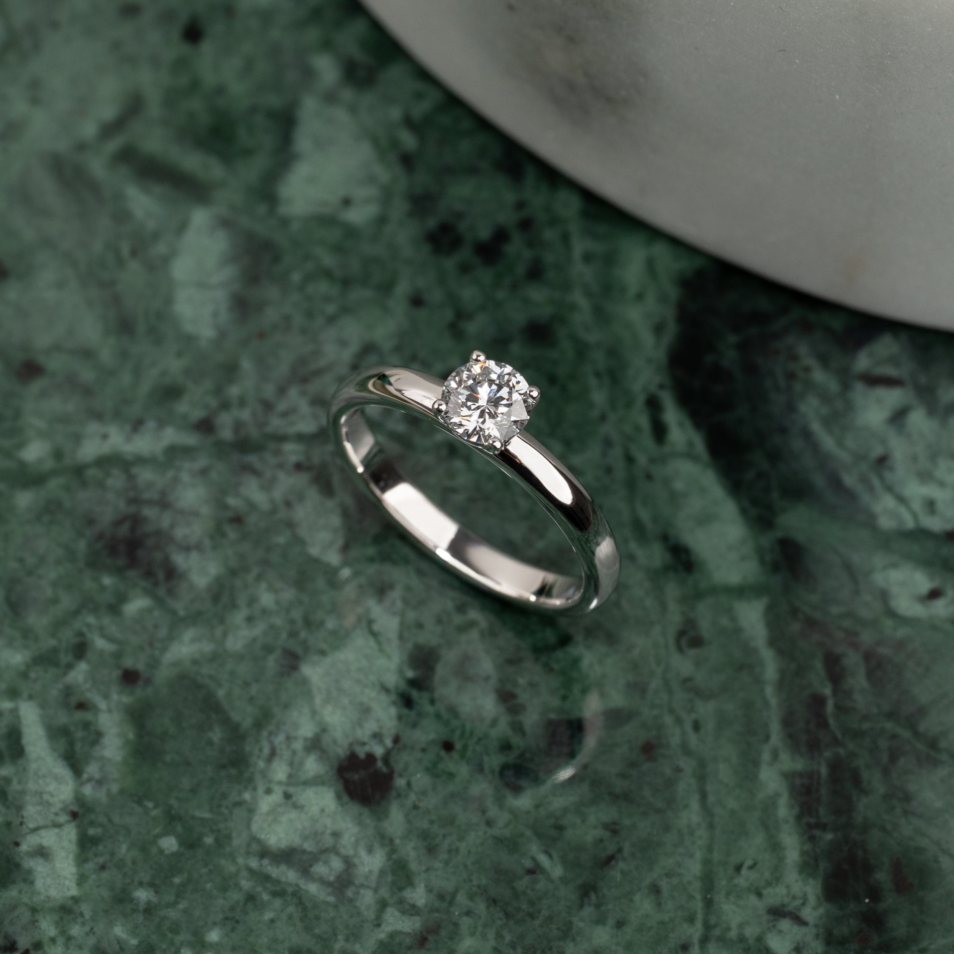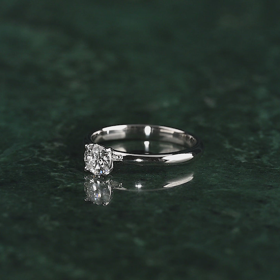 Ringen är tillverkad i 14 karat massivt vitguld med en labbodlad diamant på 0,5 ct. Diamanten har färgen E/F (River) och klarheten VVS. Smycket är skapat med omtanke; diamanterna är producerade med bland annat solenergi, och guldet är 100% certifierat återvunnet.