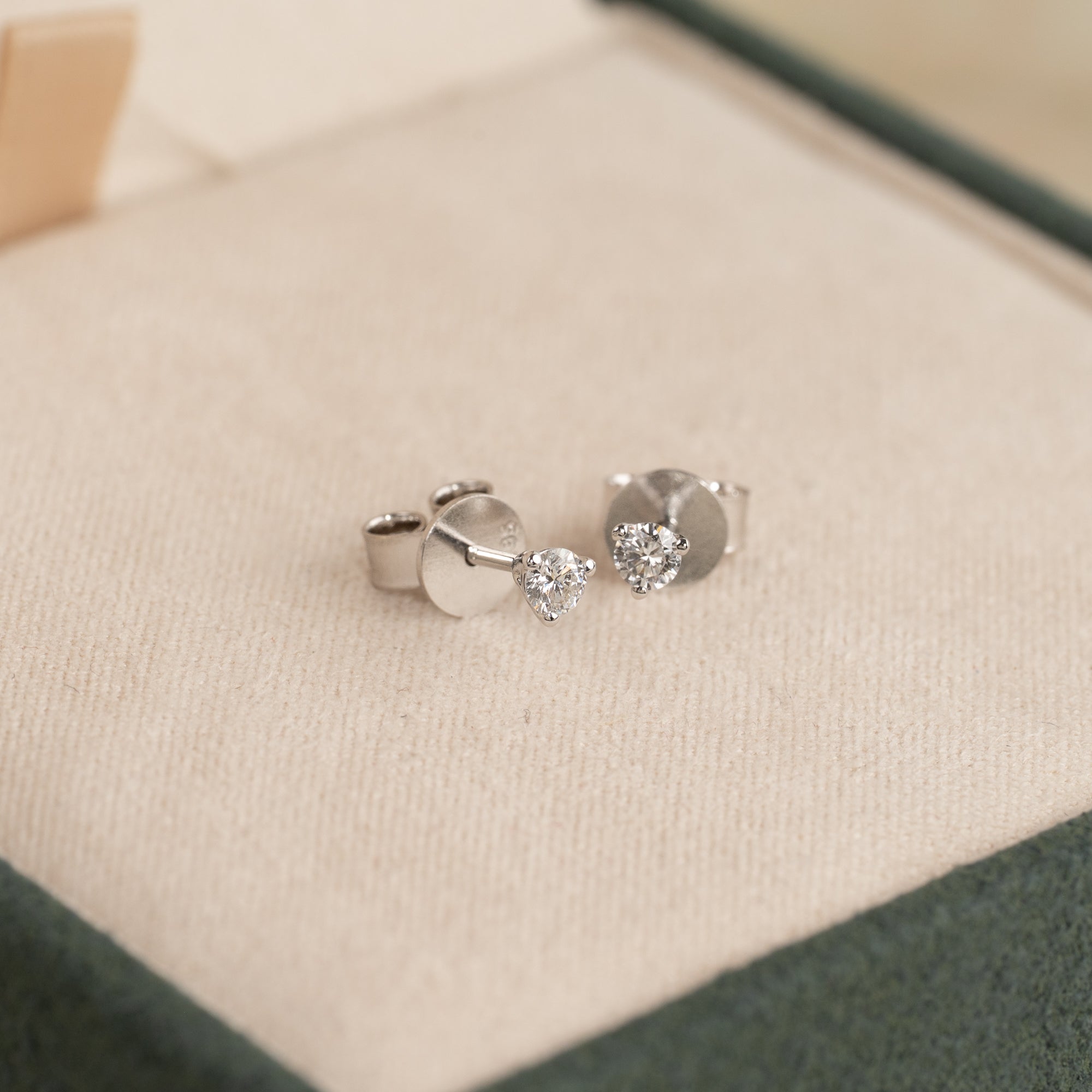 Våra diamantörhängen är tillverkade i 14 kt. massivt vitguld med 0,2 ct. labbodlade diamanter.