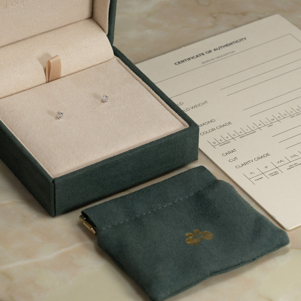 Örhängena kommer i vår exklusiva Diamond Collection box med en vacker smyckesask, certifikat och smyckespåse. Boxen är också perfekt om smycket ska ges bort som present.