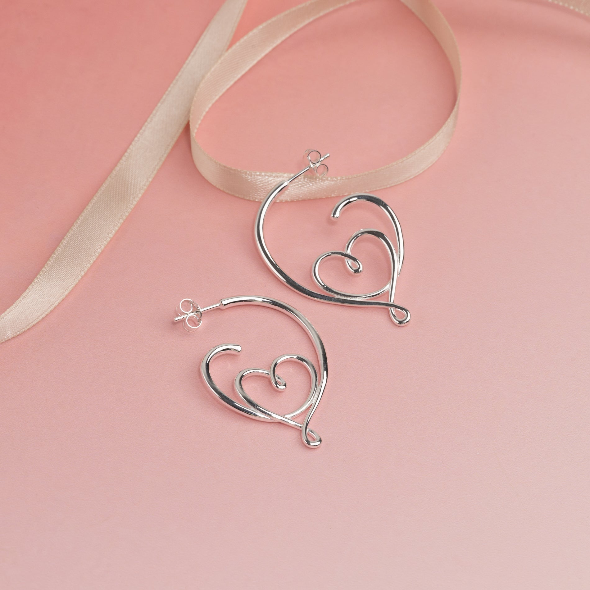 Fina hjärtformade creoler i 100% återvunnet 925 sterlingsilver.