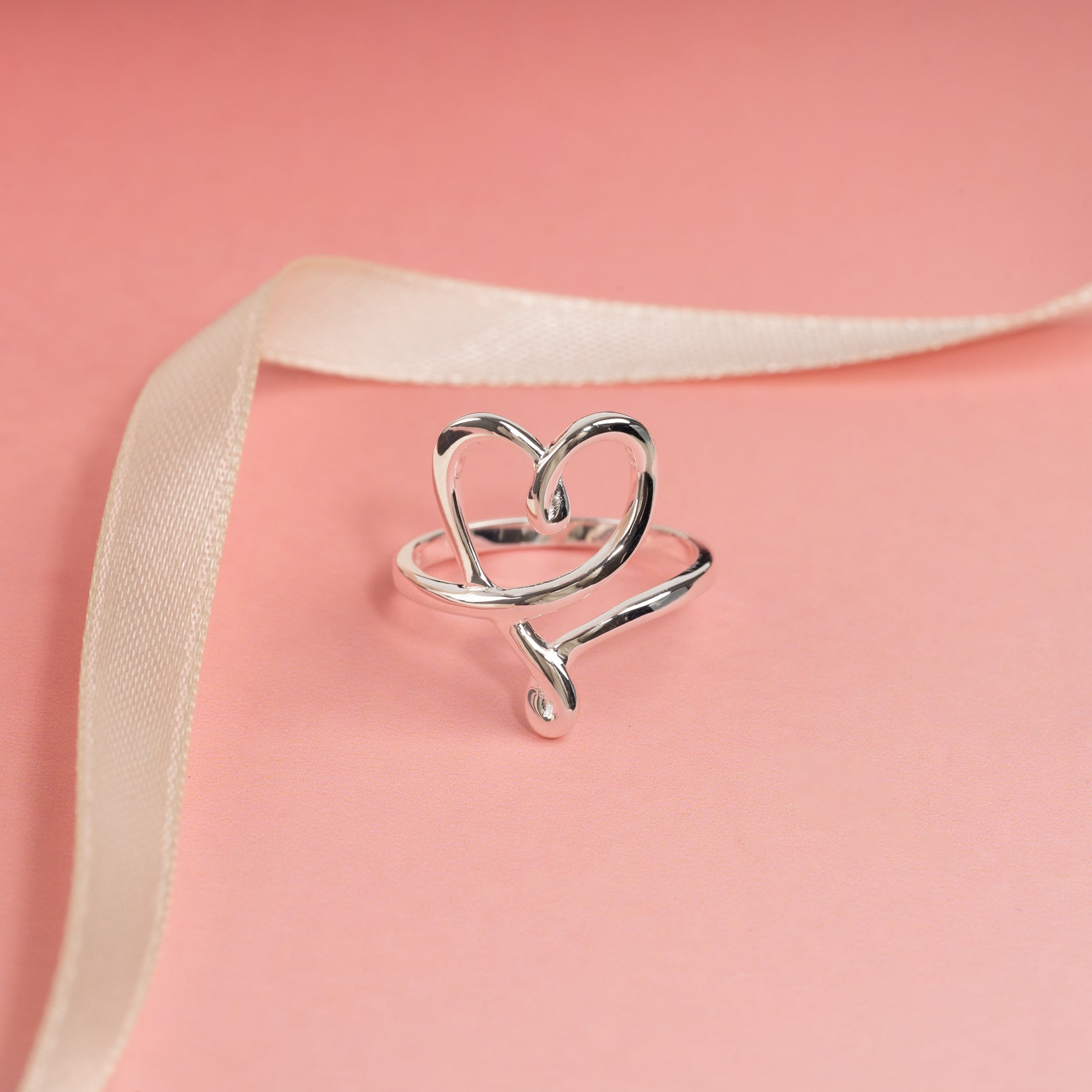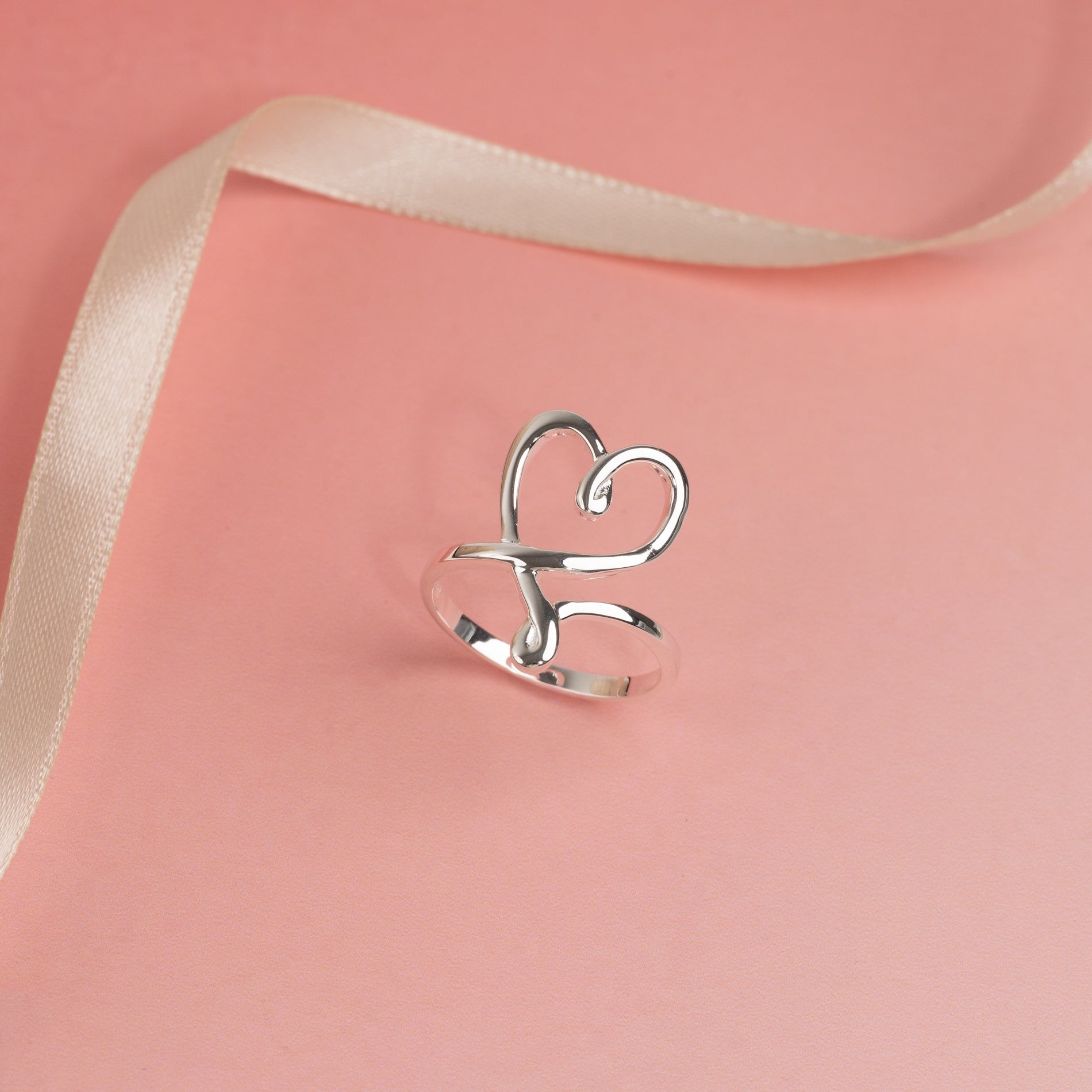 Den vackra ringen har en hjärtformad design med fina, tvistade detaljer som skapar ett lätt och feminint uttryck.