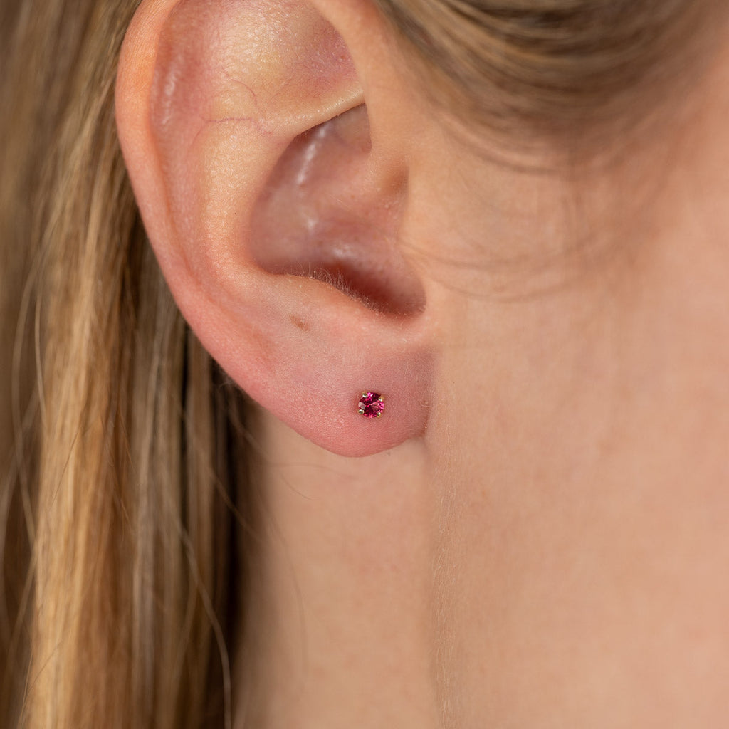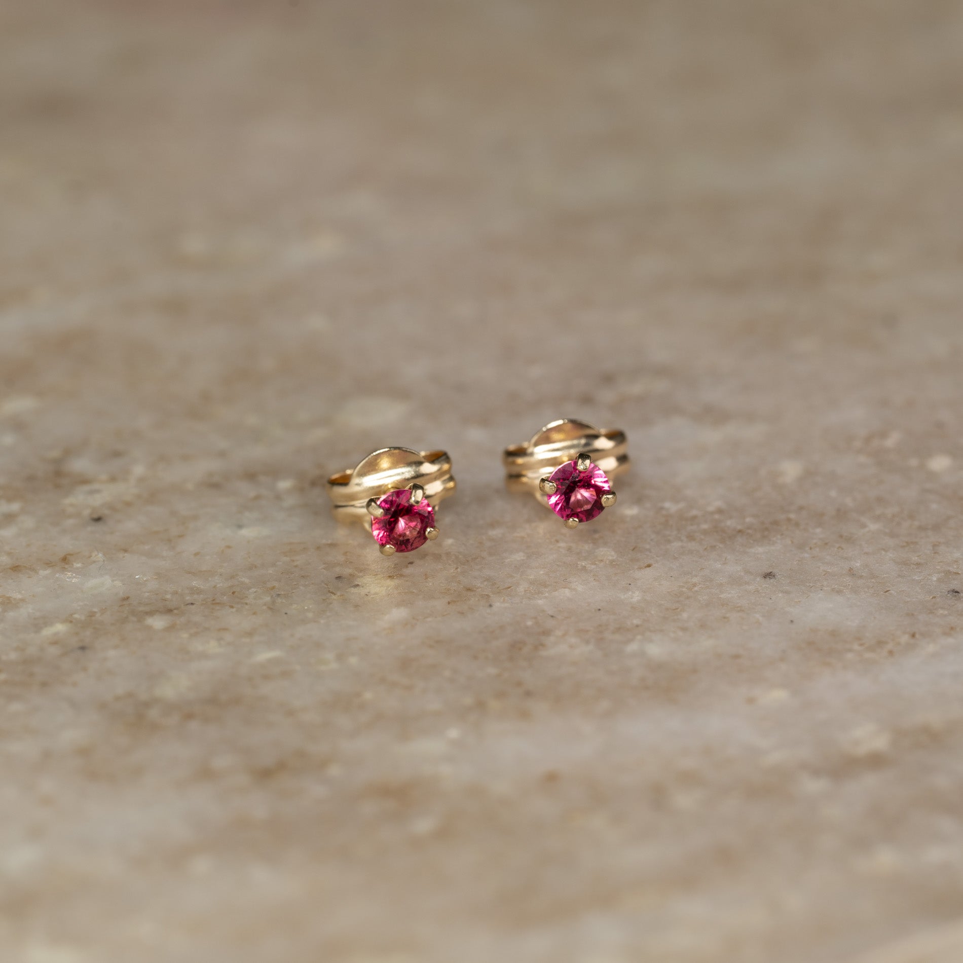 Örhängena är tillverkade i 100% återvunnet 9 karat massivt guld. Dessa örhängen är fina och klassiska med en 3 mm fasettslipad rosa topas som är fastsatt med en klassisk gripfattning.
