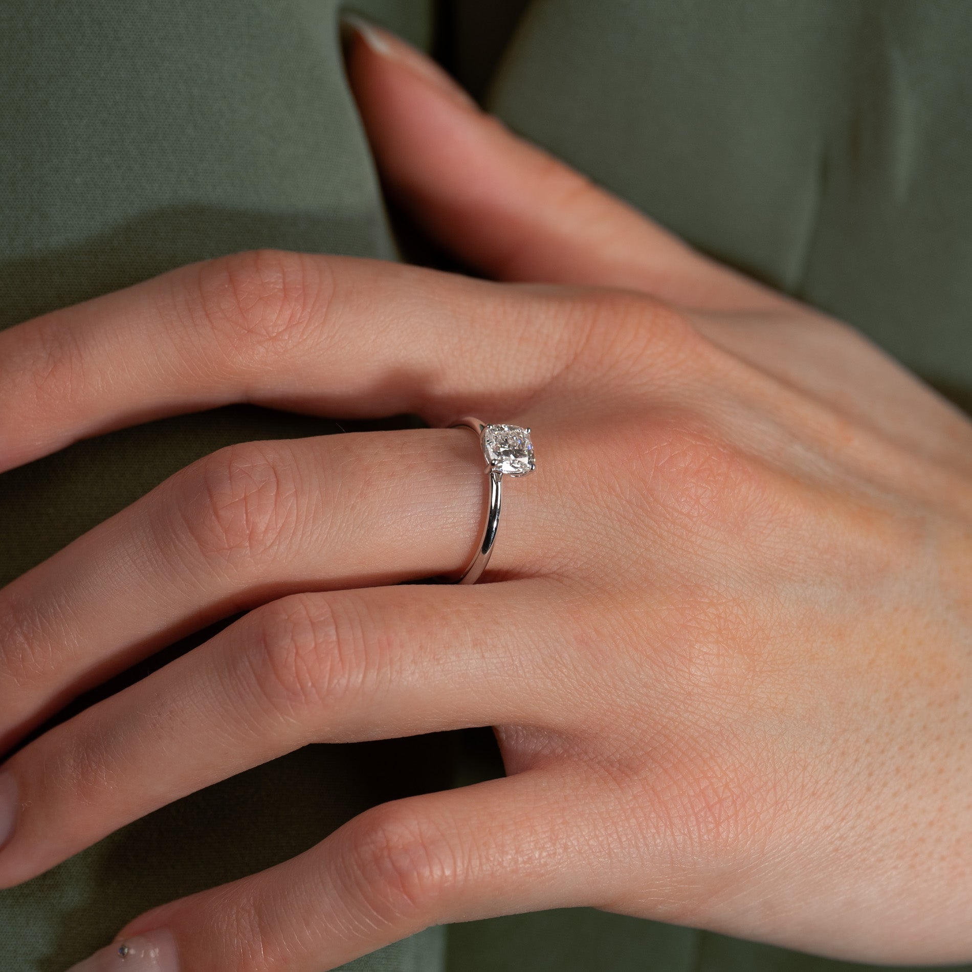 SOLITAIRE BASKET-SET CUSHION-CUT LAB-DIAMOND RING - 1.0ct - WG