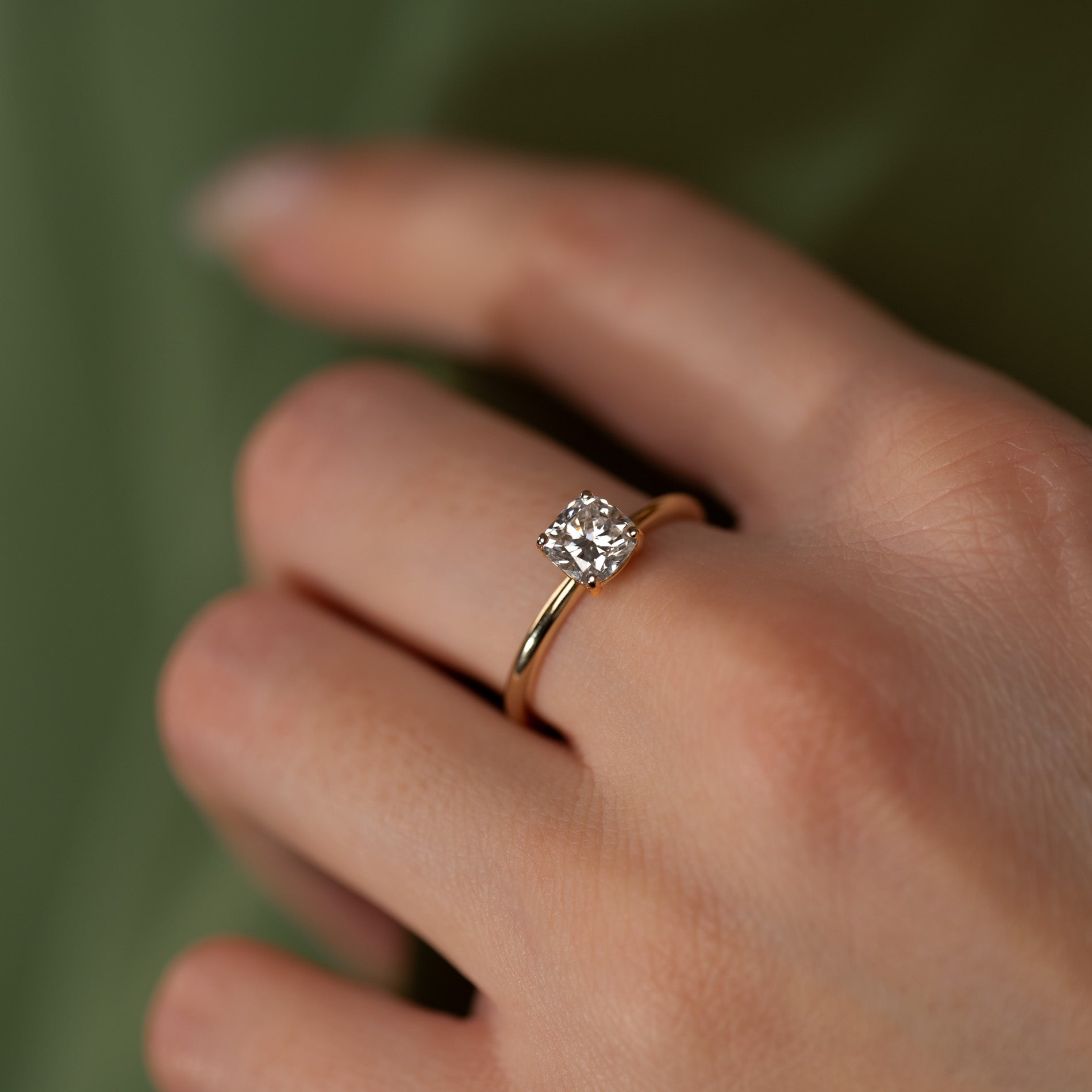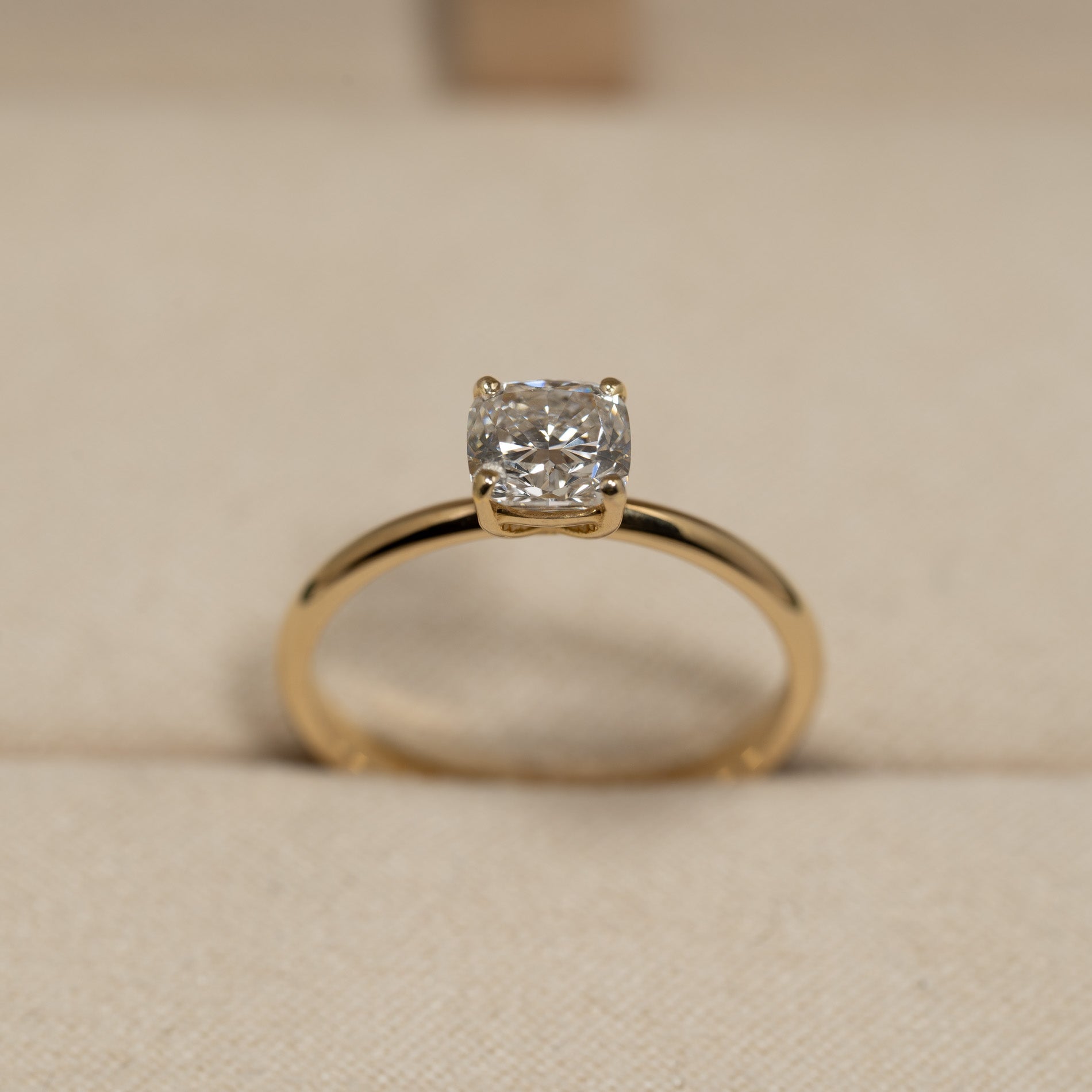 SOLITAIRE BASKET-SET CUSHION-CUT LAB-DIAMOND RING - 1.0ct - YG