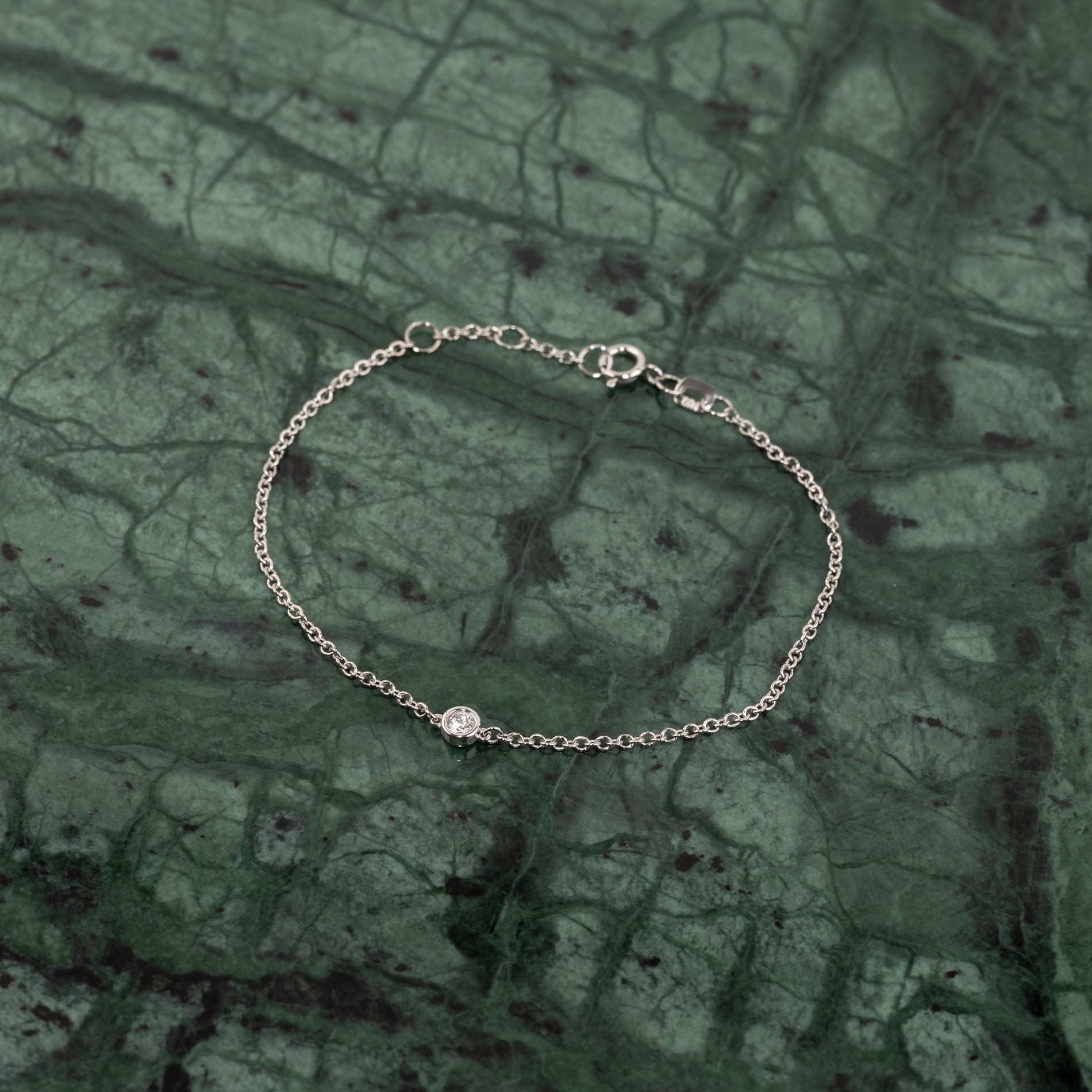 Ett klassiskt och tidlöst armband i 14 kt. massivt vitguld med en labbodlad diamant, infattad i en elegant bezelinfattning.