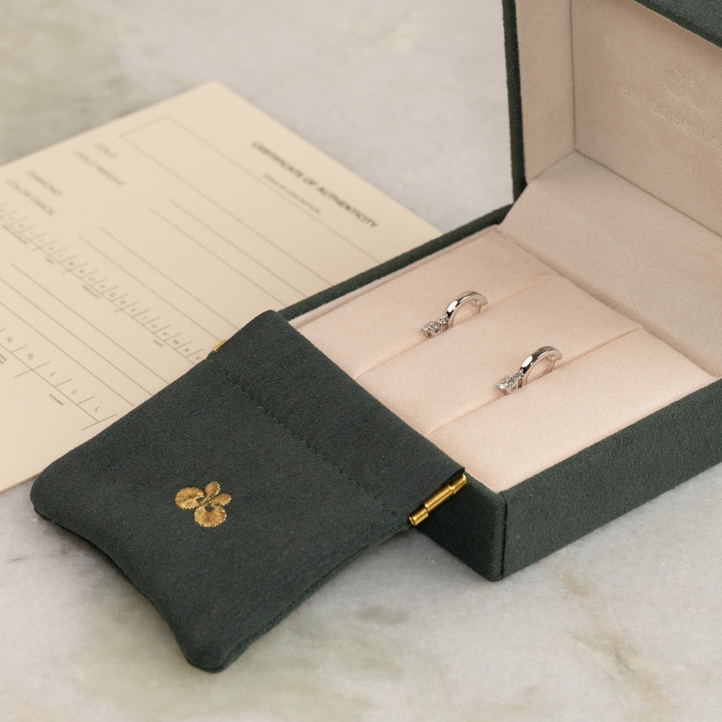 Örhängena levereras i vår exklusiva Diamond Collection-box med en vacker smyckesask, certifikat och pouch. Boxen passar perfekt om smycket ska ges bort som gåva.