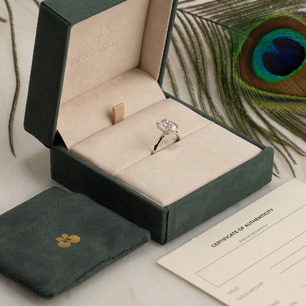Vi erbjuder en fin lösning: Vi skickar den vackra presentboxen i förväg, fint inslagen, men utan smycket. Tillsammans med boxen skickar vi med ett kort som berättar för den lyckliga mottagaren vad de har att se fram emot. Så snart smycket är färdigt skickas det separat i vår fina smyckesask tillsammans med certifikatet. På så sätt kan du ge en oförglömlig gåva, även om smycket inte är klart på den speciella dagen.