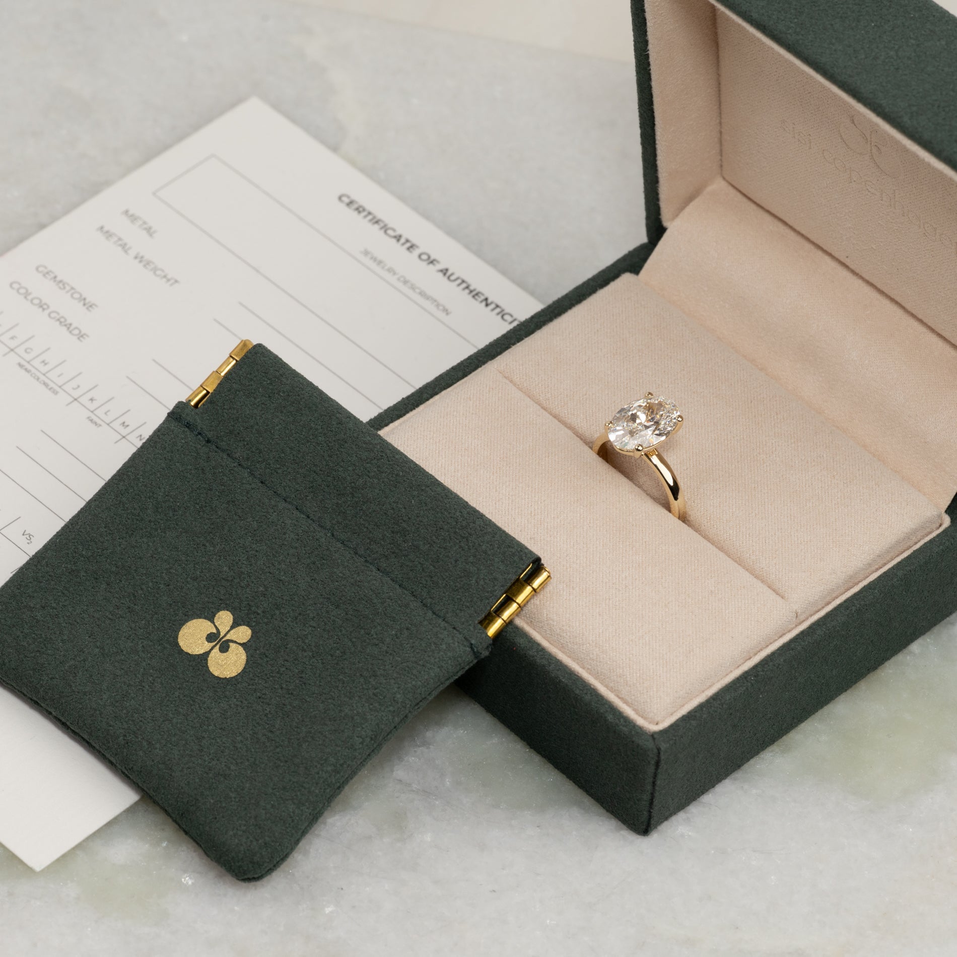 Certifikatet innehåller alla relevanta och specifika informationer om smycket, inklusive de 4 C:erna.