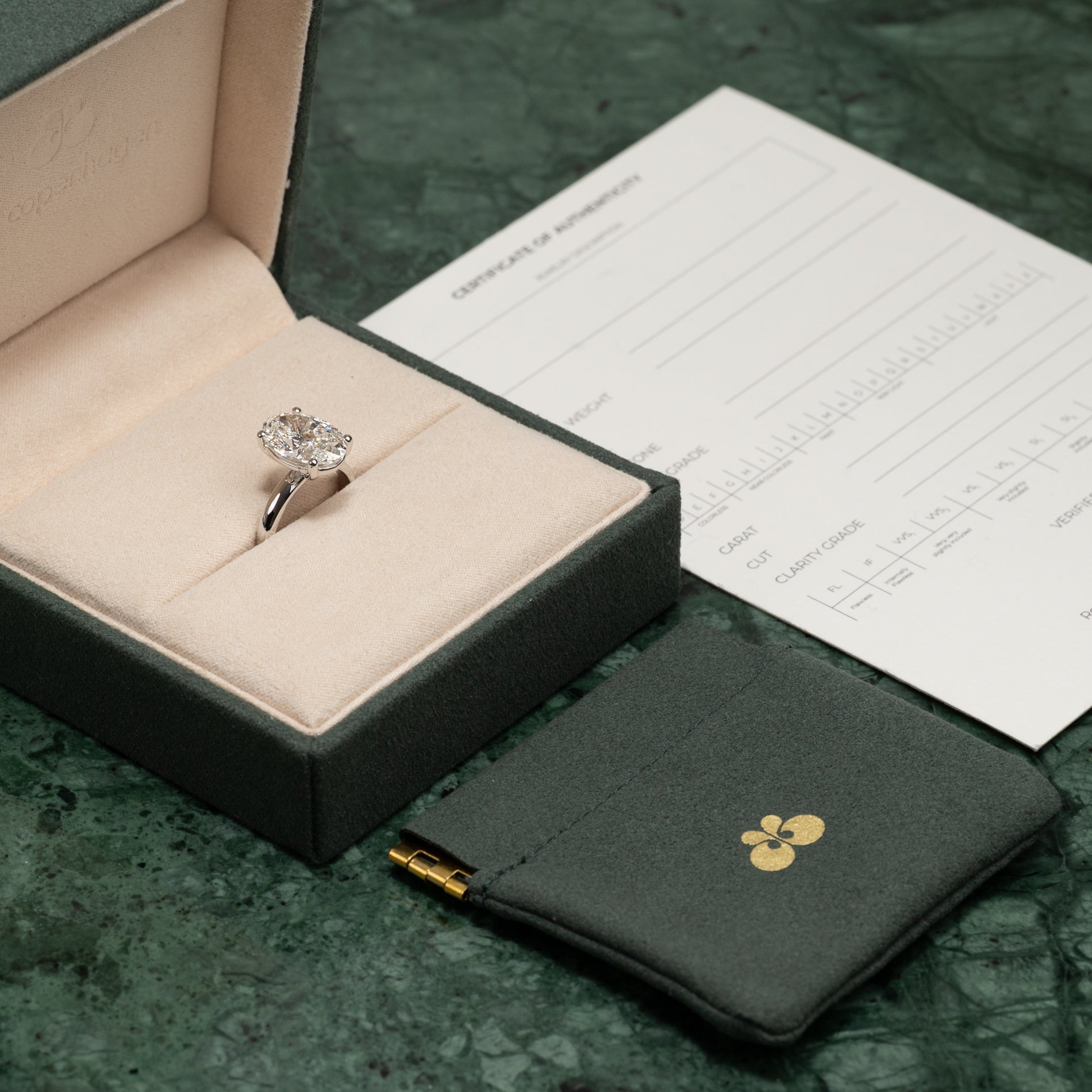 Certifikatet innehåller alla relevanta och specifika informationer om smycket, inklusive de 4 C:erna.