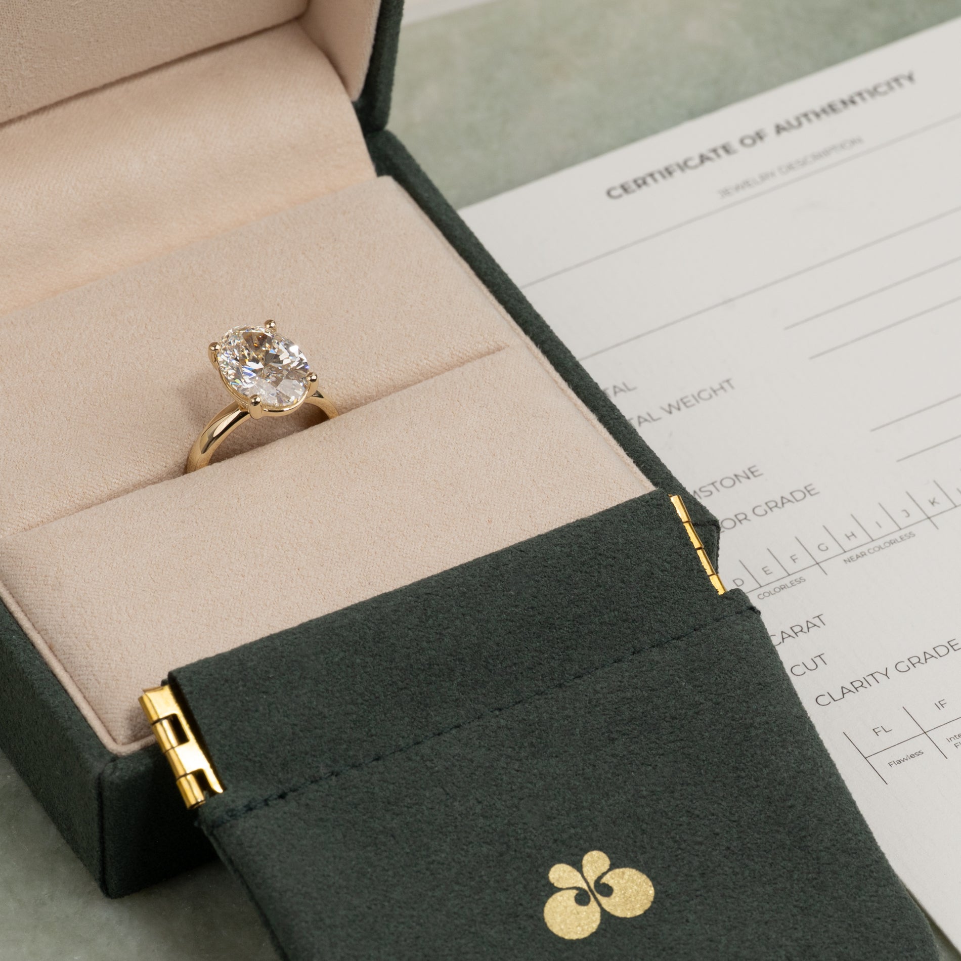 Certifikatet innehåller alla relevanta och specifika informationer om smycket, inklusive de 4 C:erna.