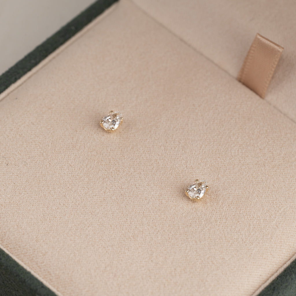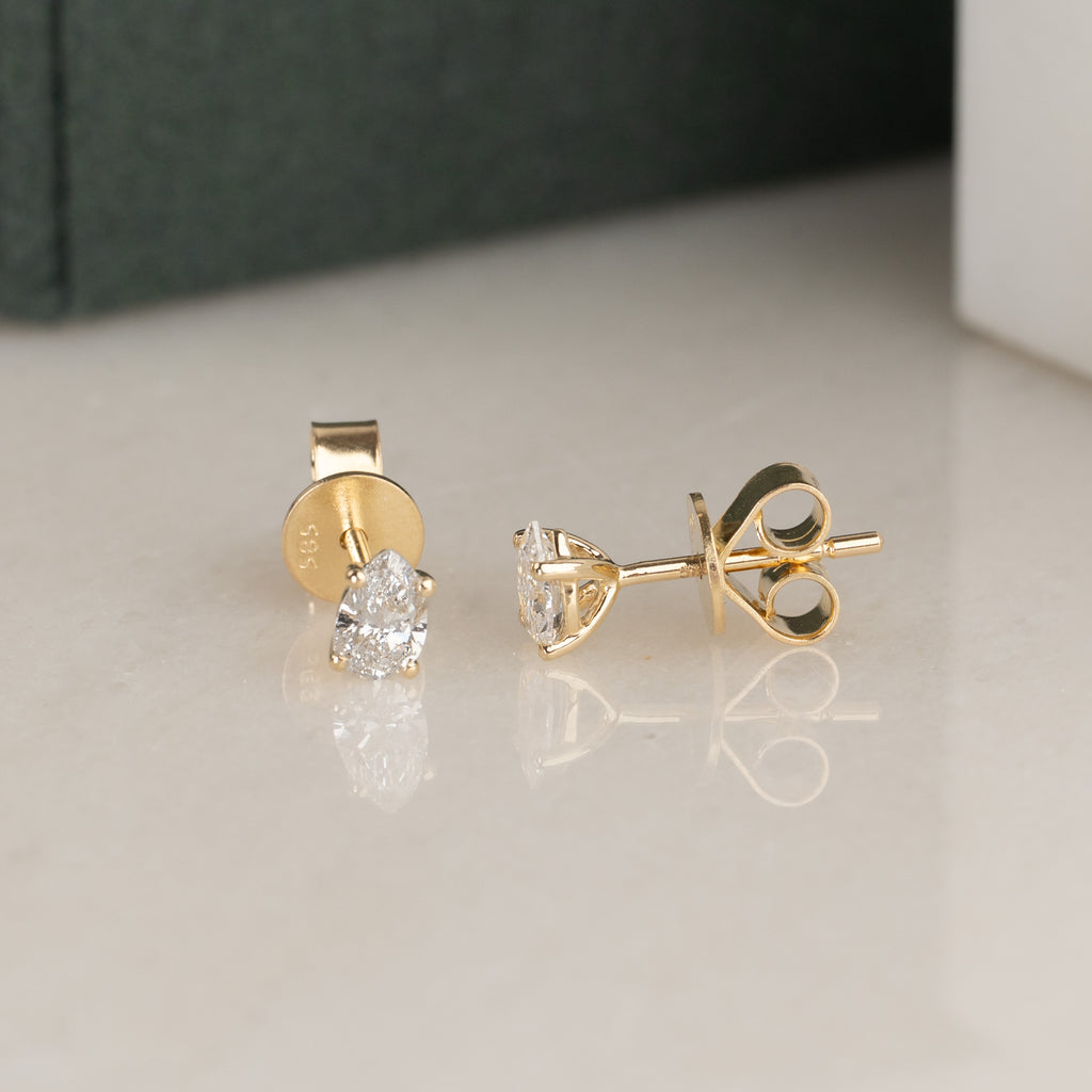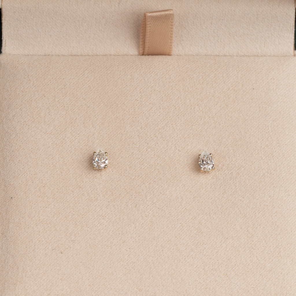 SOLITAIRE PEAR-CUT DIAMOND STUD EARRING - 0.5ct - YG