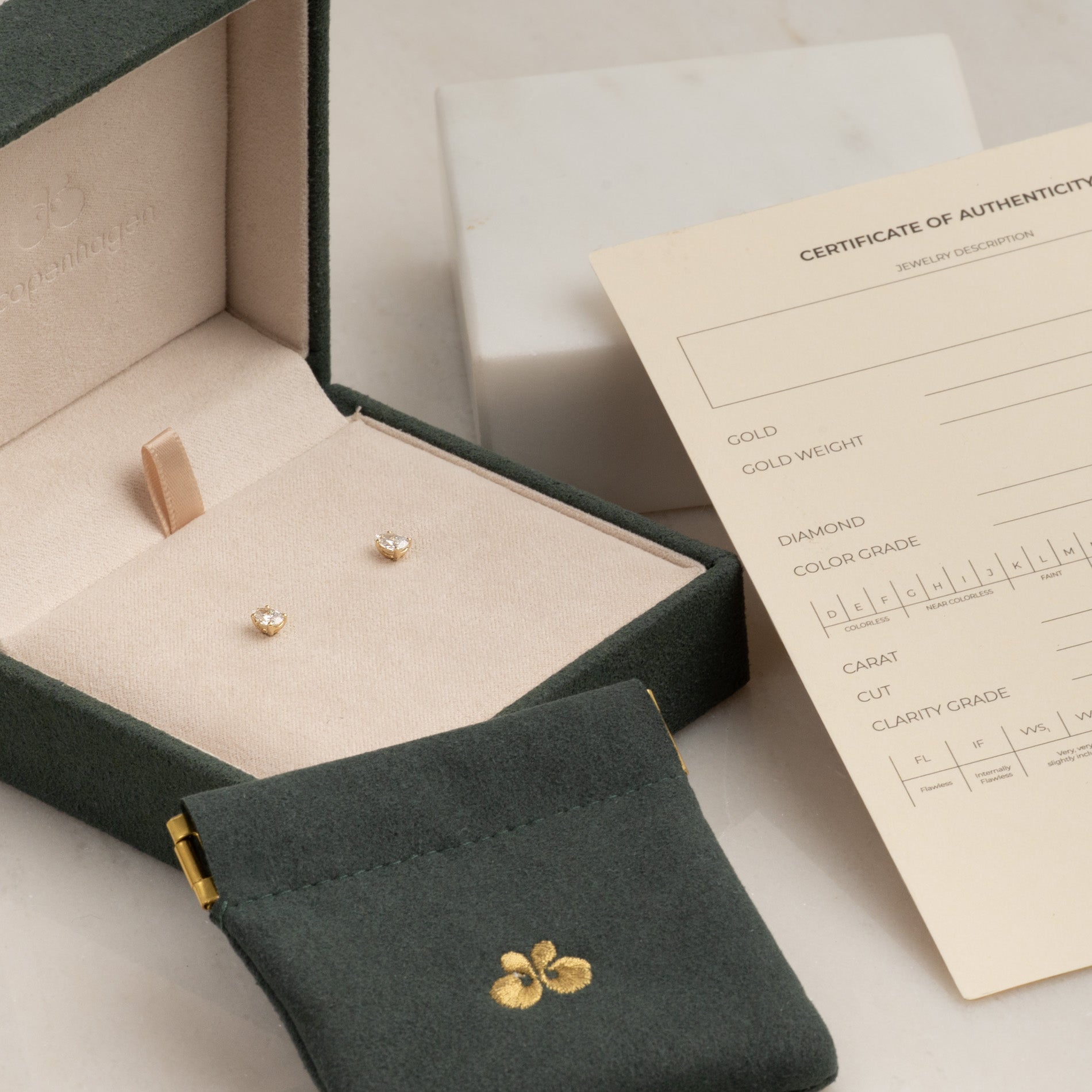 Certifikatet innehåller alla relevanta och specifika informationer om smycket, inklusive de 4 C:erna.