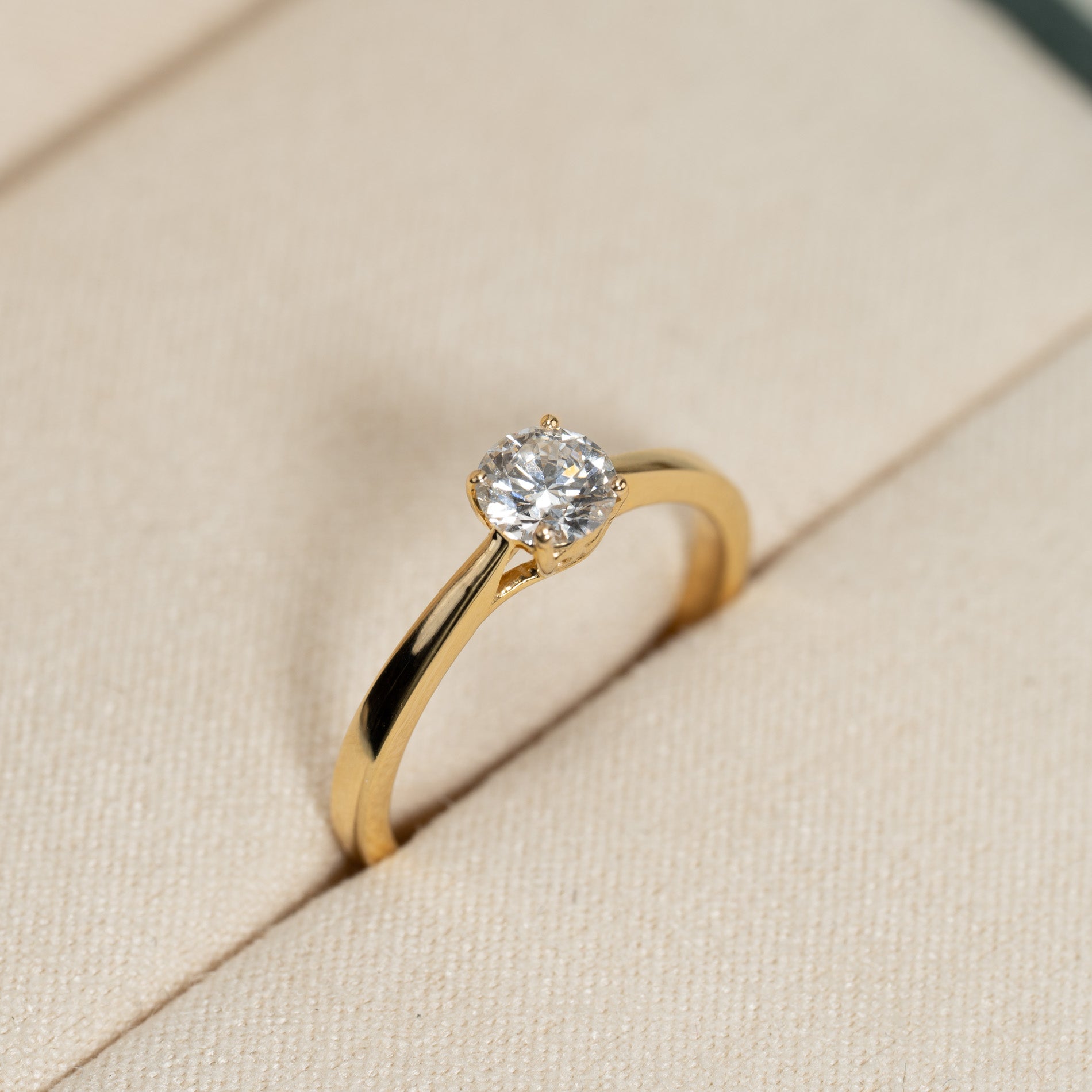 Elegant solitärring i 14 kt guld med 0,55 ct labbodlad diamant