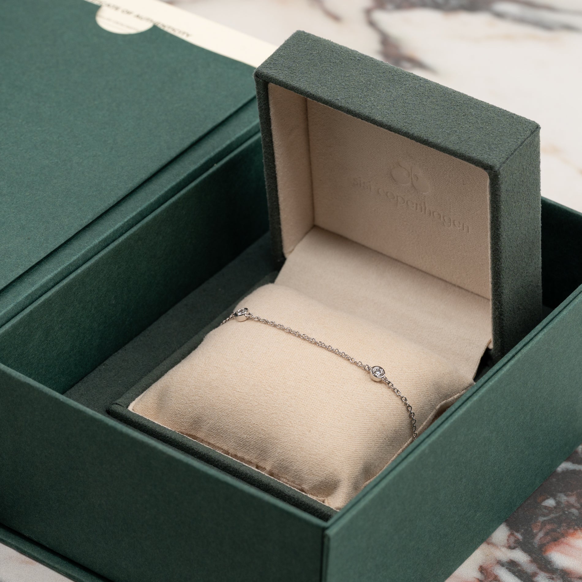 Våra smycken från 'Diamond Collection' levereras i våra exklusiva gröna smyckeskrin i matchande presentaskar med presentband. Perfekt att ge som gåva till någon man bryr sig om.
