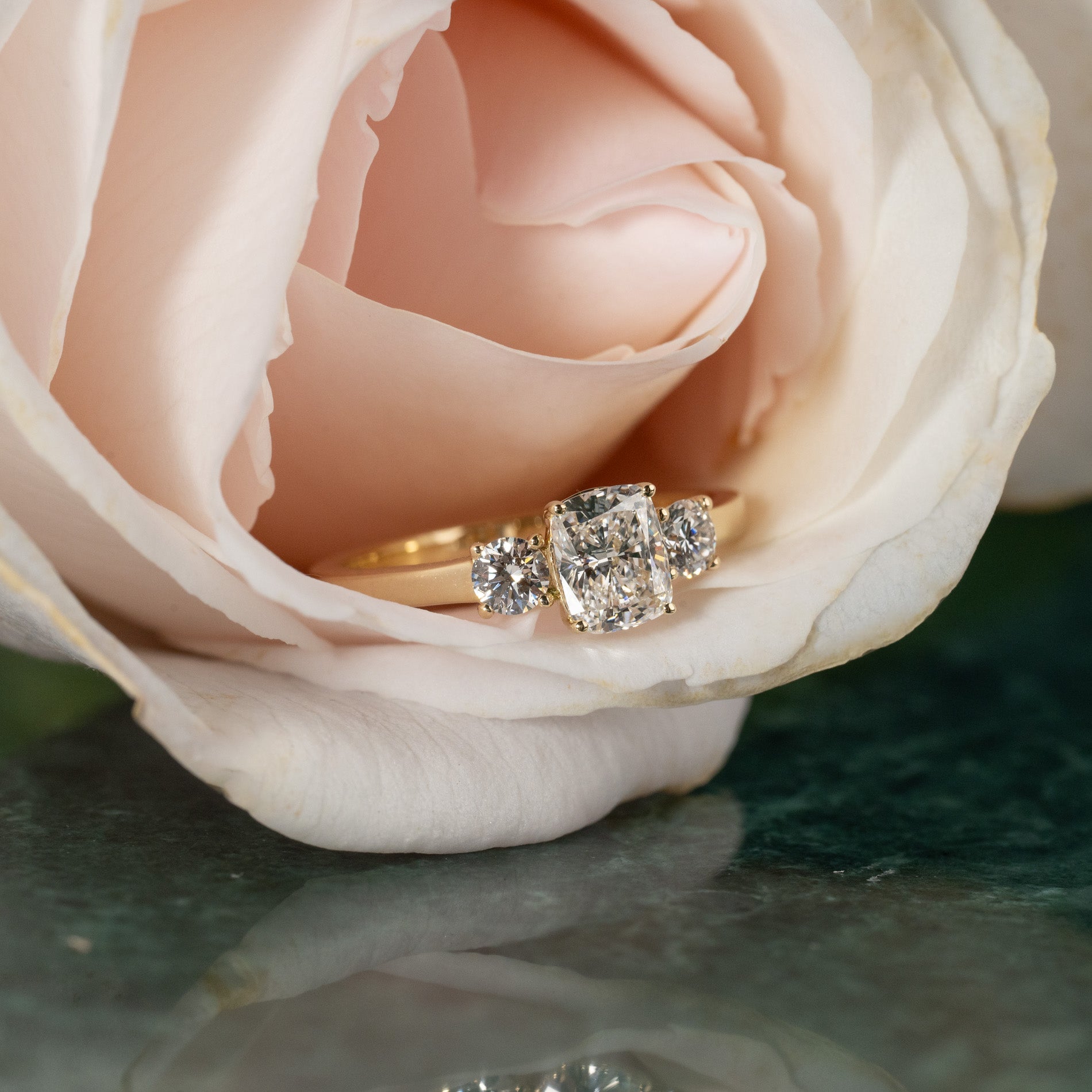 THREE-STONE RECTANGULAR CUSHION-CUT LAB-DIAMOND RING - 1.15ct - YG